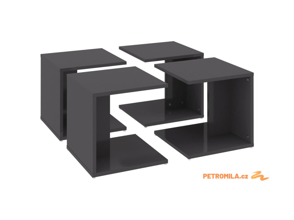 Konferenční stolky 4 ks šedé vysoký lesk 33x33x33cm dřevotříska