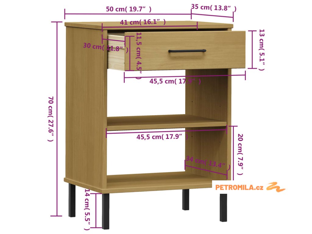 Konzolová skříňka s kovovými nohami hnědá masivní borovice OSLO