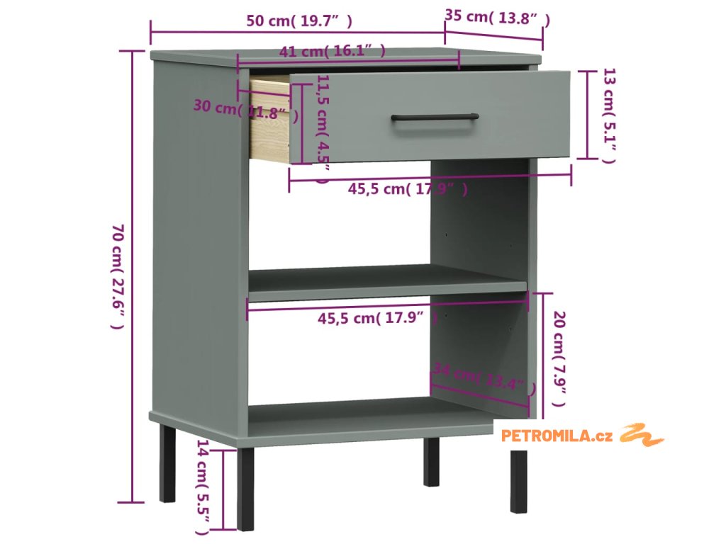 Konzolová skříňka s kovovými nohami šedá masivní borovice OSLO