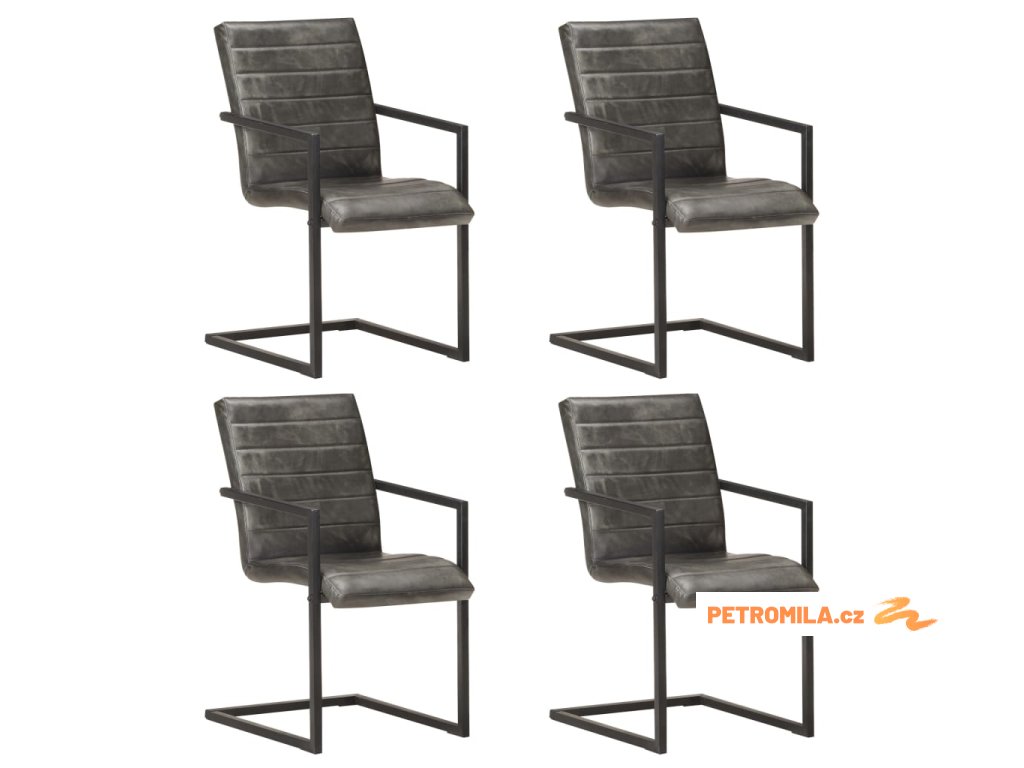 Konzolové jídelní židle 4 ks šedé pravá kůže