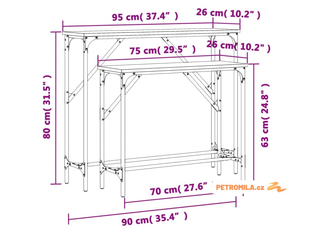 - Rozměry malého stolku: 75 x 26 x 63 cm (Š x H x V)