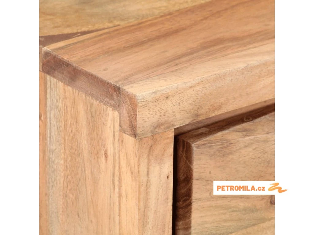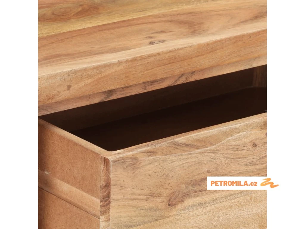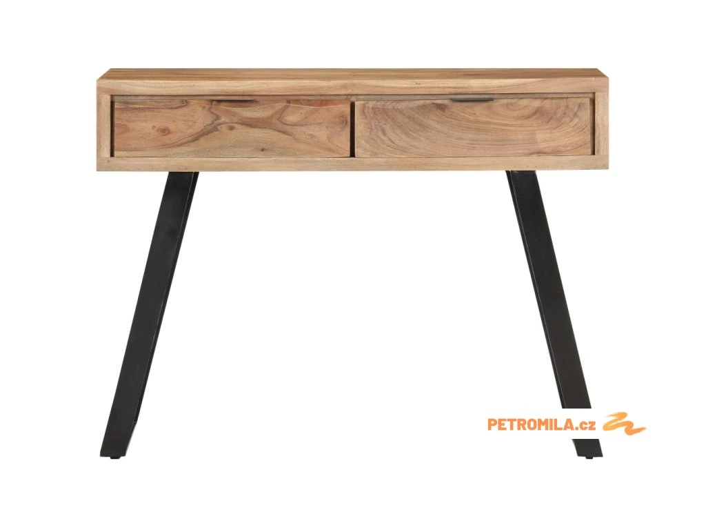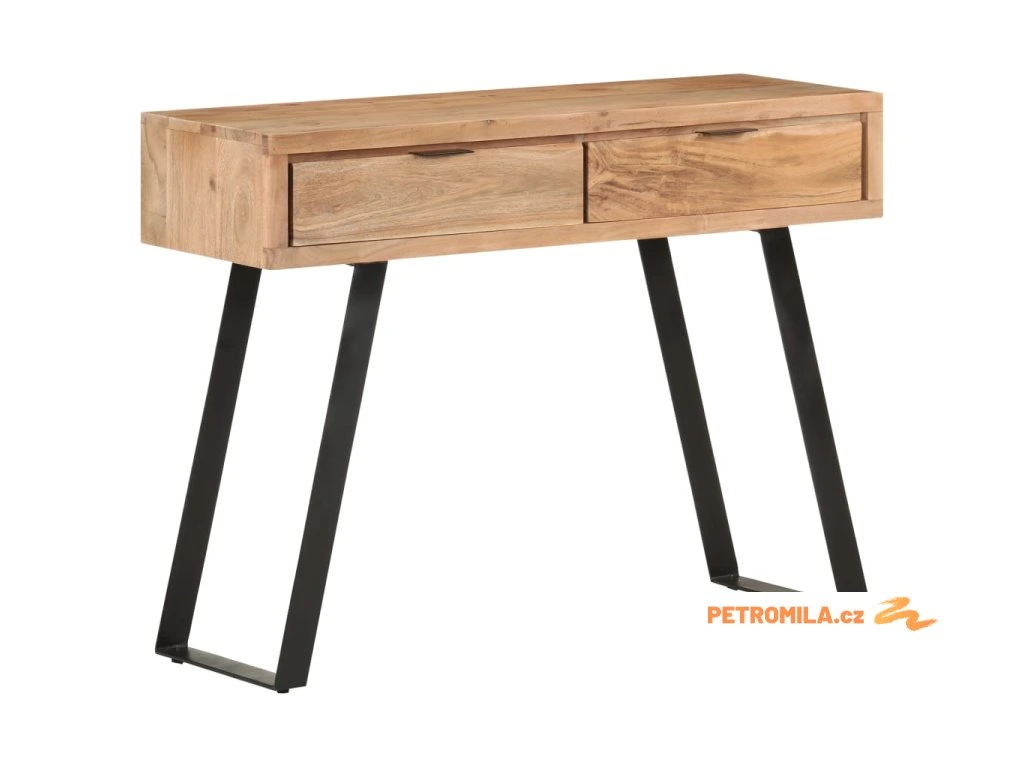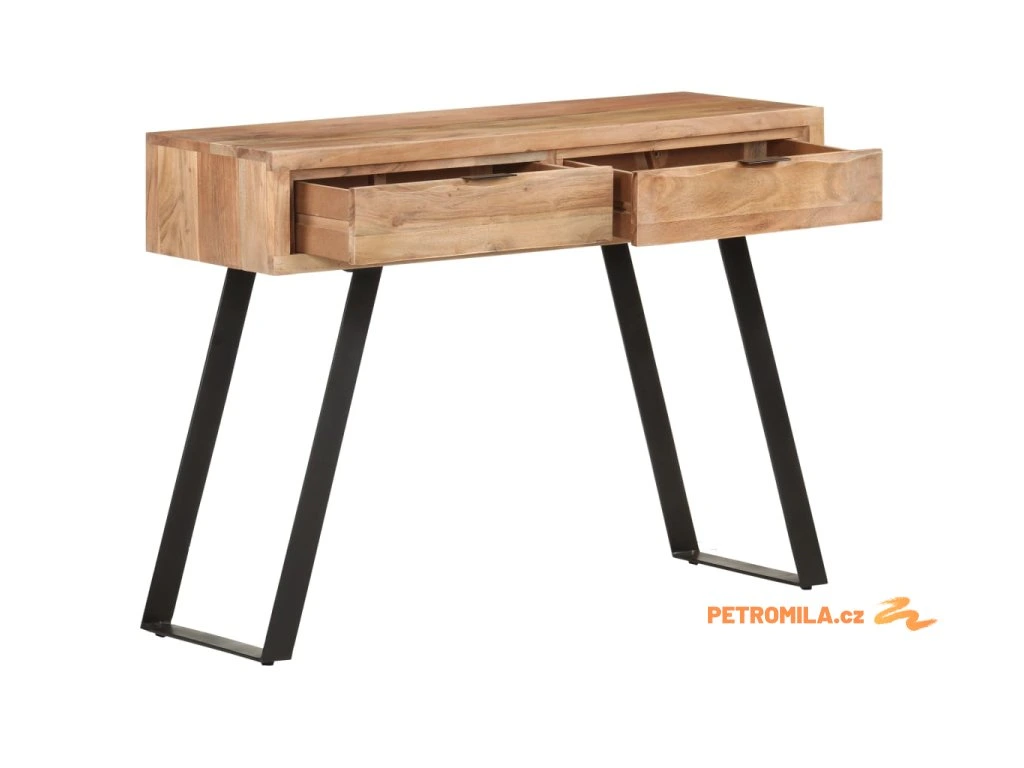 Tento stolek do předsíně je ručně vyrobený z masivního akáciového dřeva, tvrdého dřeva s hustou strukturou, takže je stabilní a odolný. Ocelový rám zvyšuje stabilitu. Živé hrany dřeva kopírují přirozený tvar stromu a podtrhují krásu tohoto předsíňového nábytku. Ve stolku jsou dvě zásuvky, které poskytují dostatek úložného prostoru, takže budete mít své položky přehledně uspořádané a po ruce.