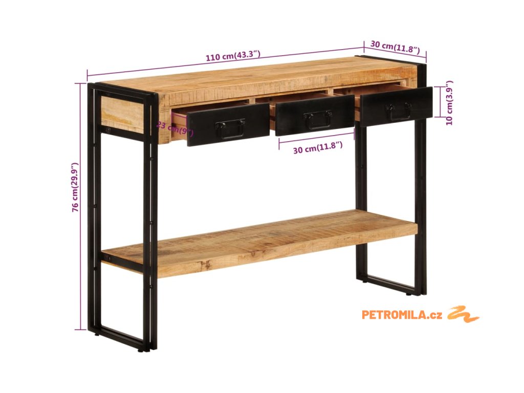 Konzolový stolek 110 x 30 x 76 cm masivní mangovníkové dřevo