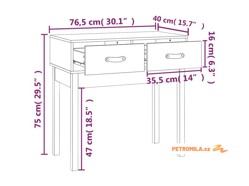 Konzolový stolek 76,5 x 40 x 75 cm masivní borové dřevo