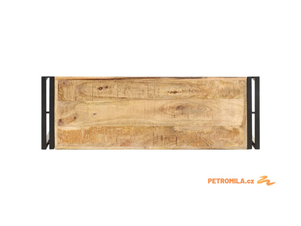 - Materiál: hrubé mangovníkové dřevo s přírodním povrchem, práškově lakované železo