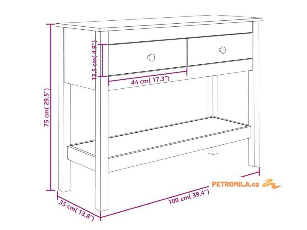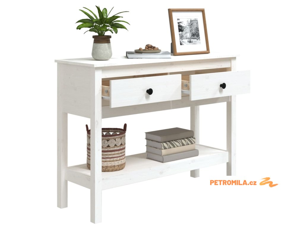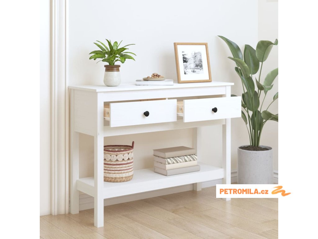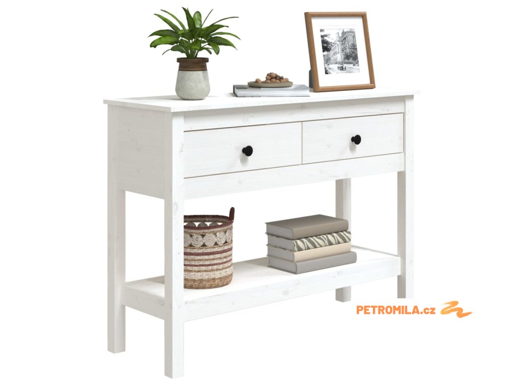 Konzolový stolek bílý 100 x 35 x 75 cm masivní borové dřevo