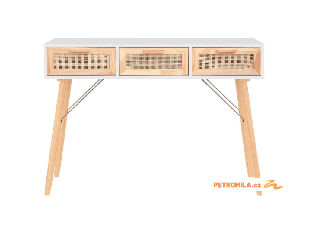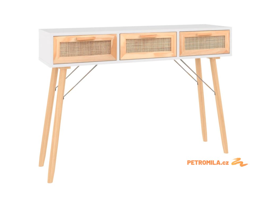 Konzolový stolek bílý 105x30x75 cm borovice a přírodní ratan