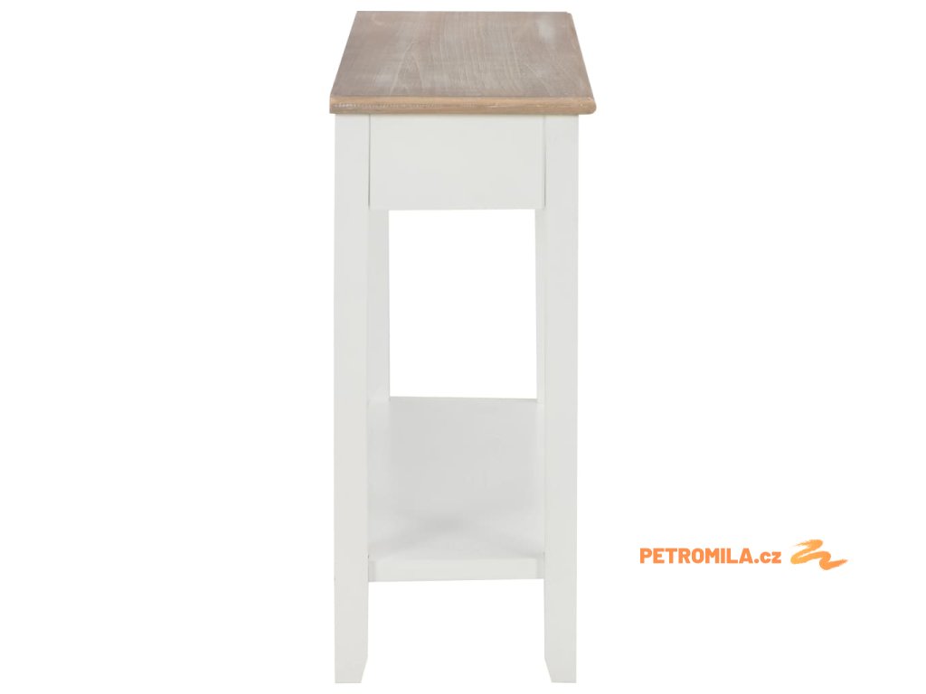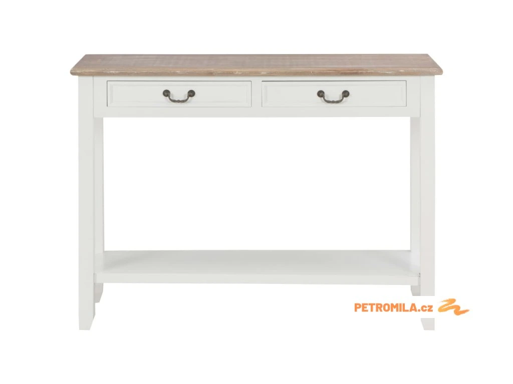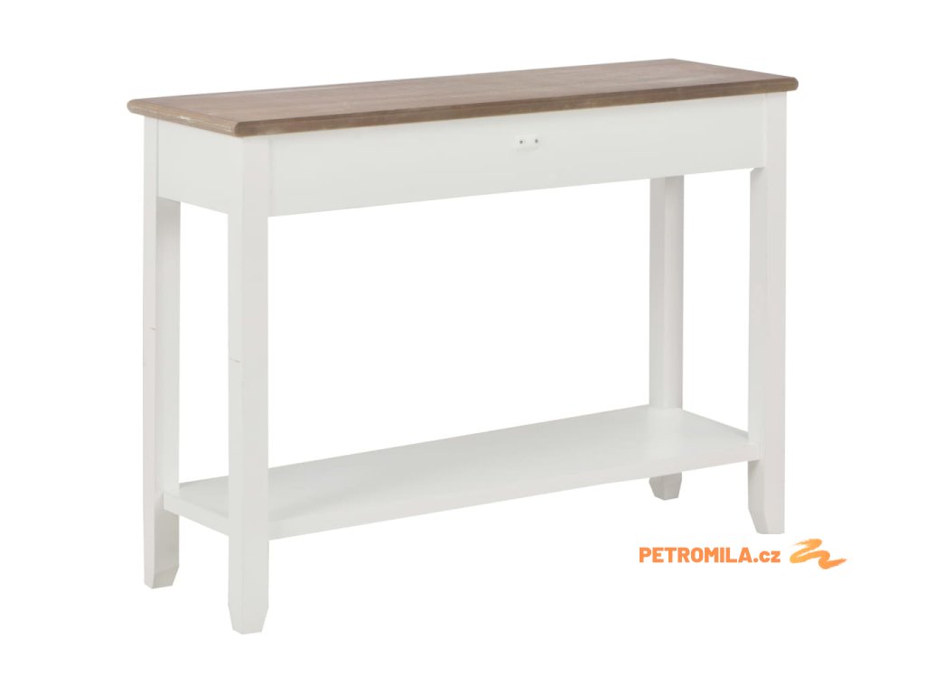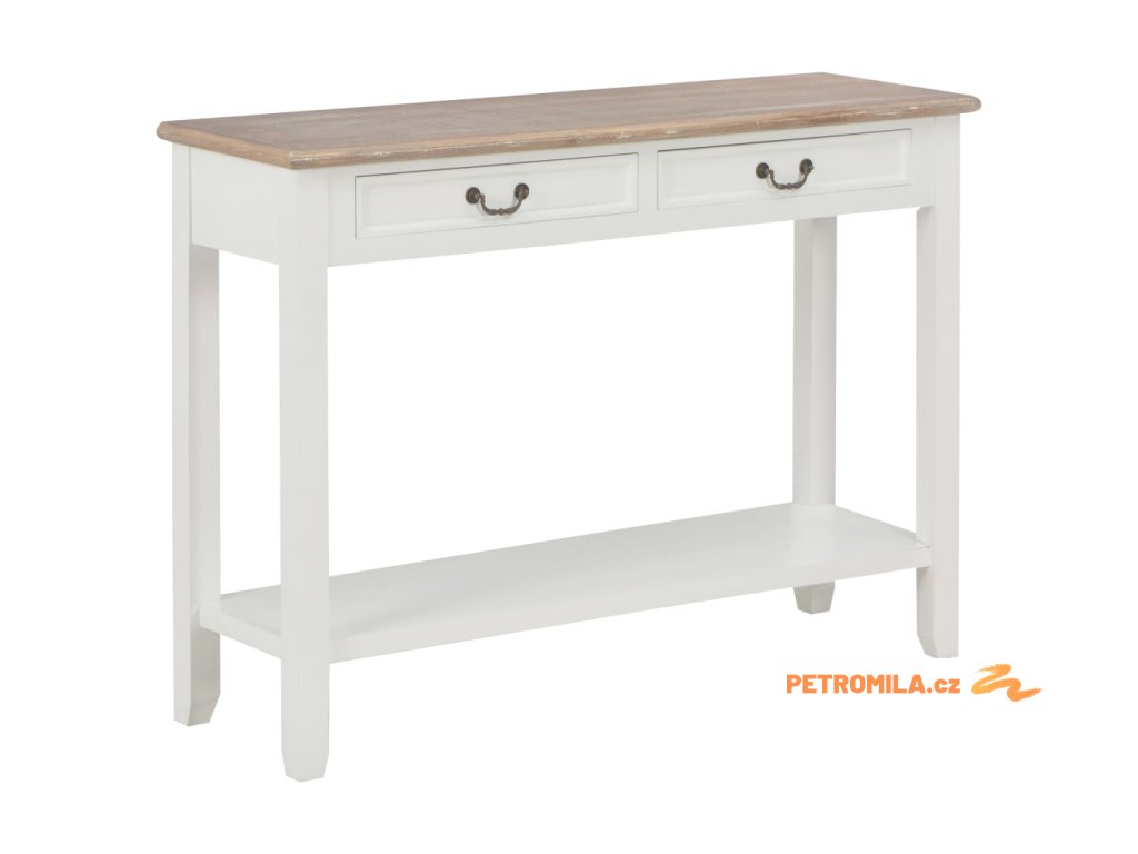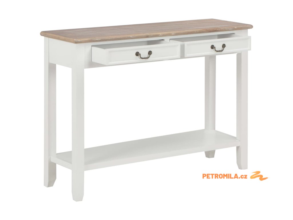 Stolek má robustní desku z odolné MDF, na níž si můžete vystavit dekorativní předměty, jako jsou mísy s ovocem či vázy. Nohy z masivní borovice zaručují jeho stabilitu a dlouhou životnost. Stolek dále disponuje 2 prostornými zásuvkami pro uložení všelijakých menších předmětů, které zde budete mít hezky uspořádané a po ruce. Další prostor vám nabídne také polička, kam si můžete uložit boty a jiné věci.