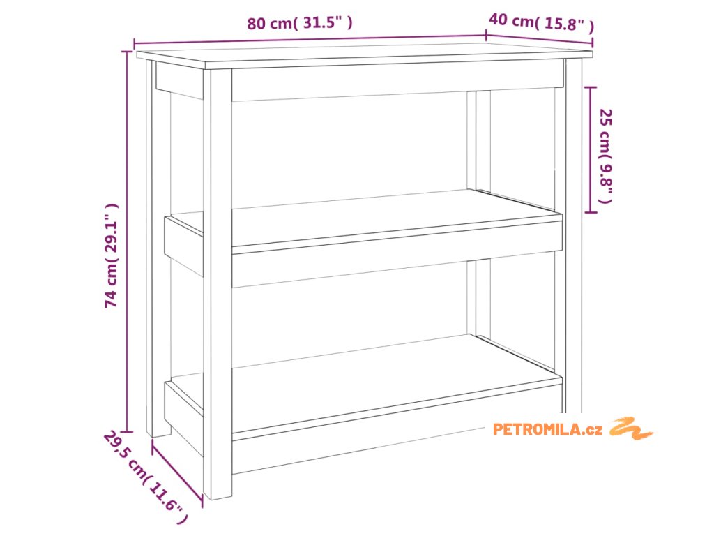 Konzolový stolek bílý 80x40x74 cm masivní borové dřevo
