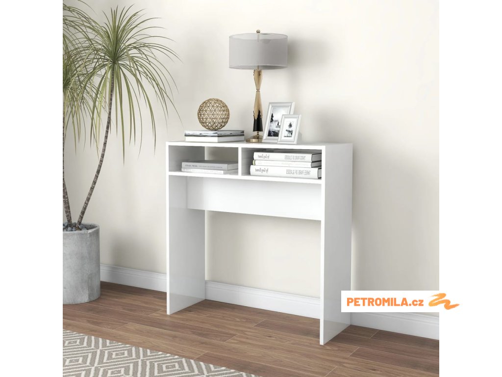 Stolek do předsíně je vyrobený z kvalitního kompozitního dřeva, takže je odolný a snadno se čistí. Je ideálním místem pro odložení klíčů nebo pro vystavení pokojových rostlin, vonných svíček a jiných dekorativních předmětů. Umožní vám tak přehledně si uspořádat svůj prostor a udržet v něm pořádek. Tento stolek nezabere mnoho místa, a přitom zkrášlí váš vchod, předsíň, obývací pokoj nebo kancelář.