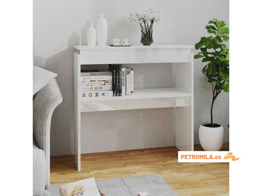 Konzolový stolek bílý vysoký lesk 80x30x80 cm kompozitní dřevo