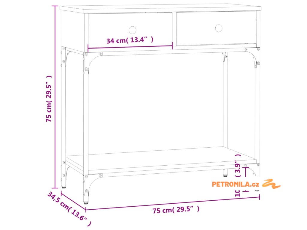 - Robustní stolní deska: Robustní deska tohoto stolku do předsíně je ideální k vystavení zarámovaných fotografií, rostlin v květináčích a jiných dekorativních předmětů.