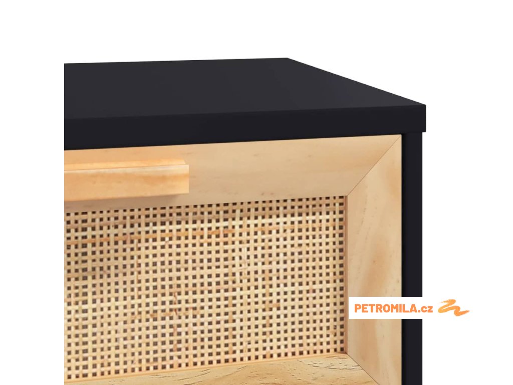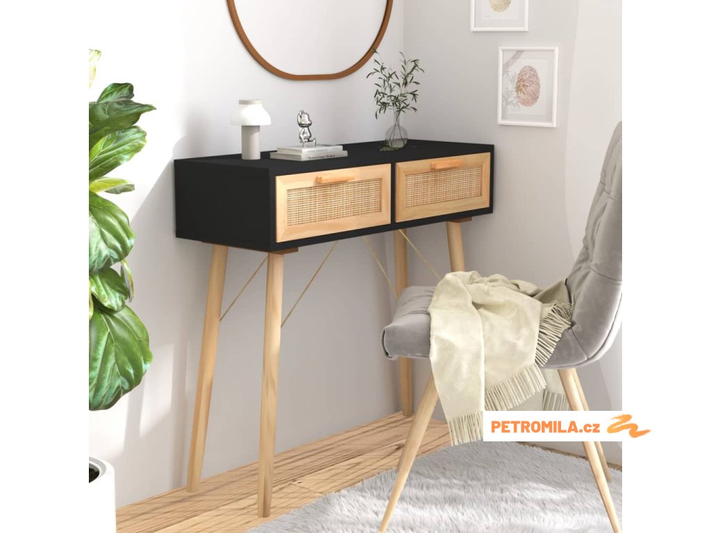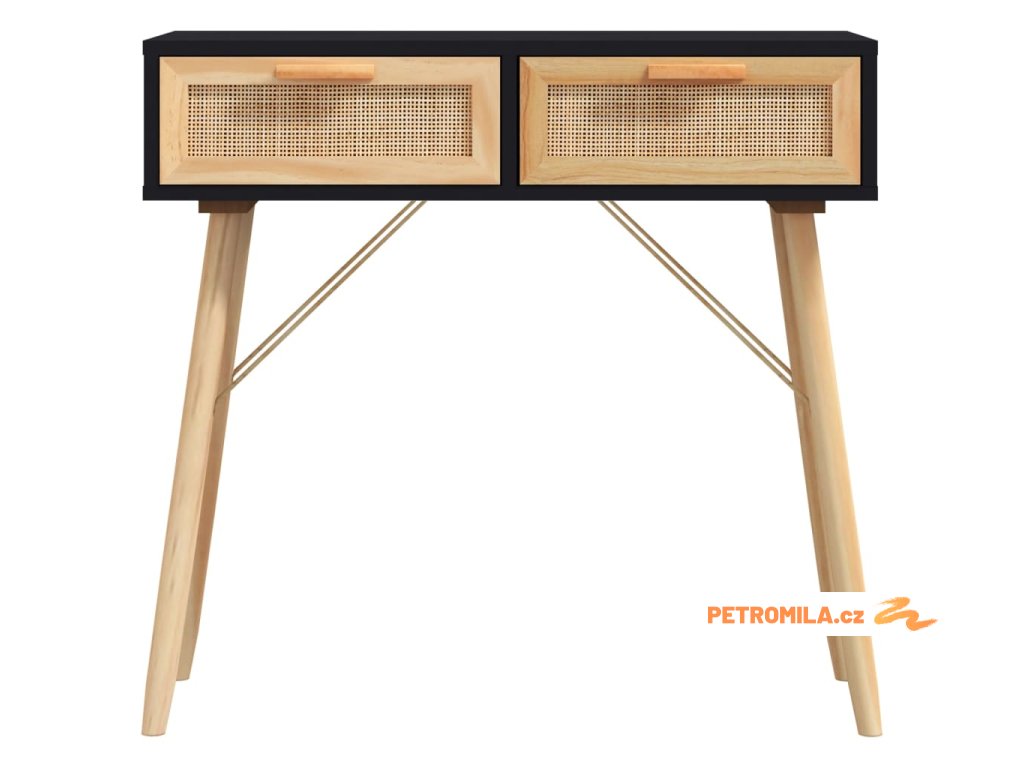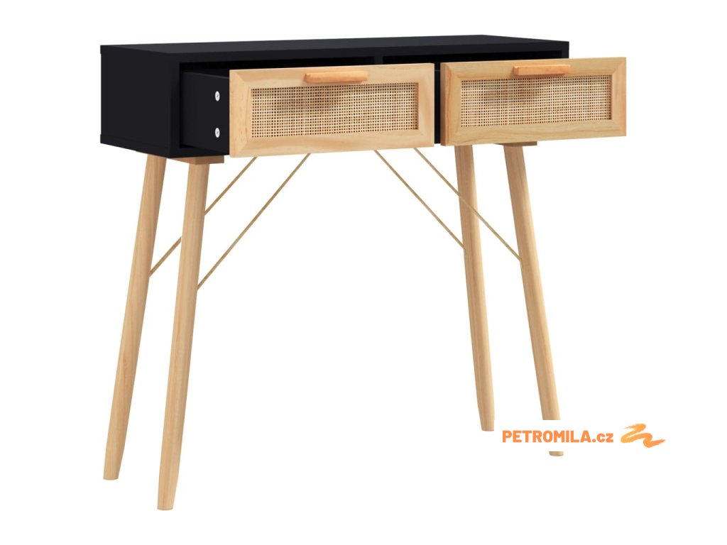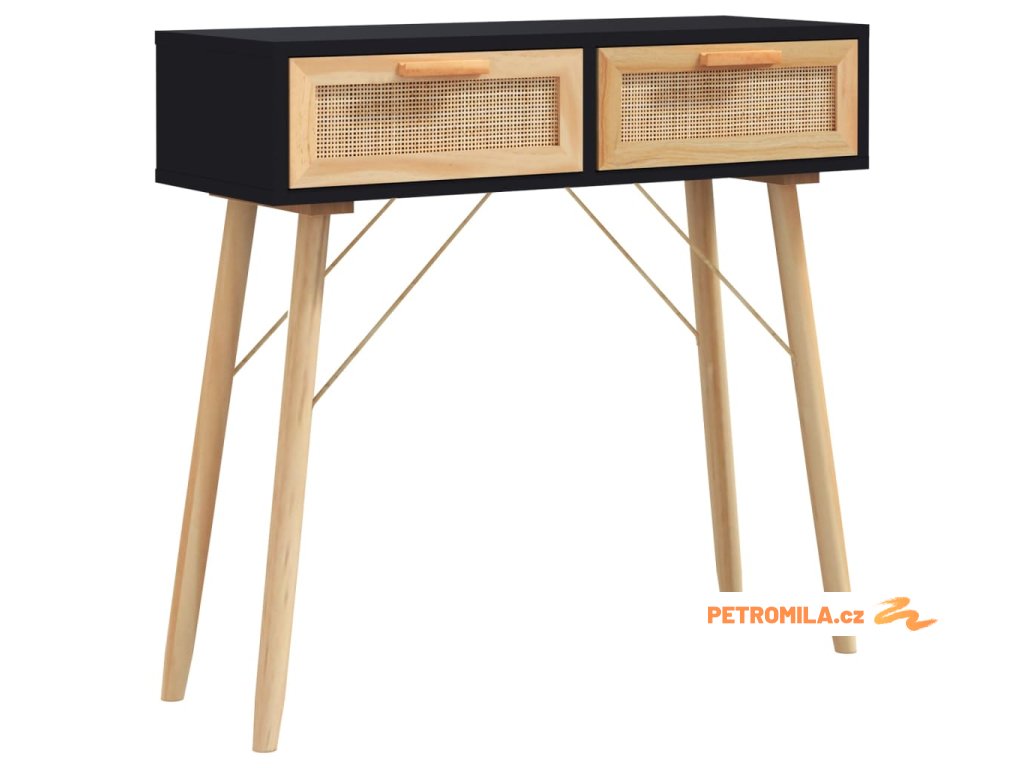Konzolový stolek černý 80x30x75 cm borovice a přírodní ratan