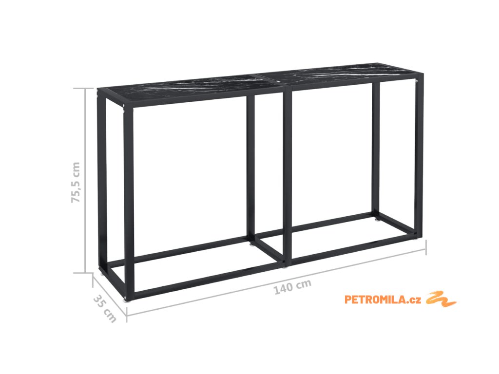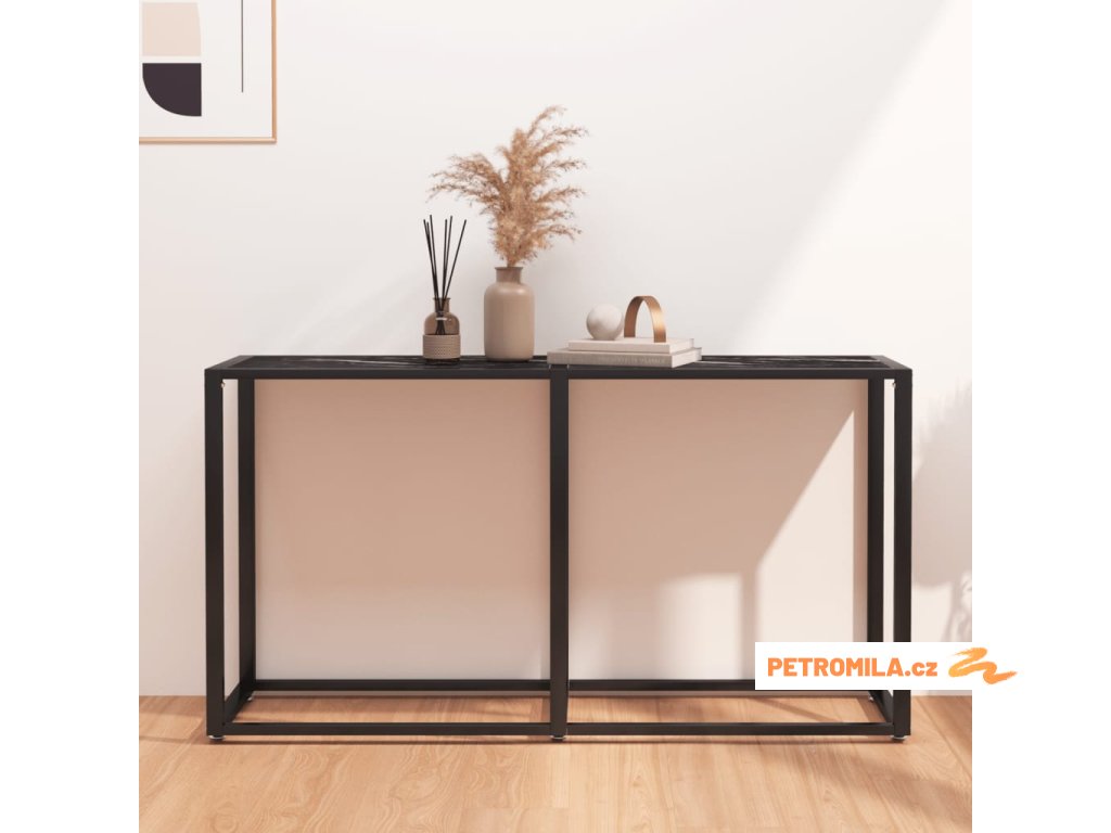 Konzolový stolek černý mramor 140 x 35 x 75,5 cm tvrzené sklo
