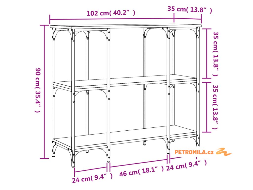 - Rozměry: 102 x 35 x 90 cm (D x Š x V)