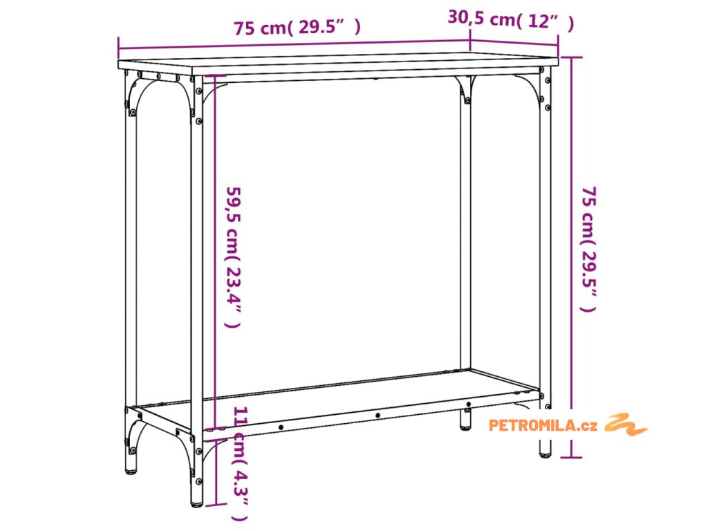 Konzolový stolek kouřový dub 75 x 30,5 x 75 cm kompozitní dřevo