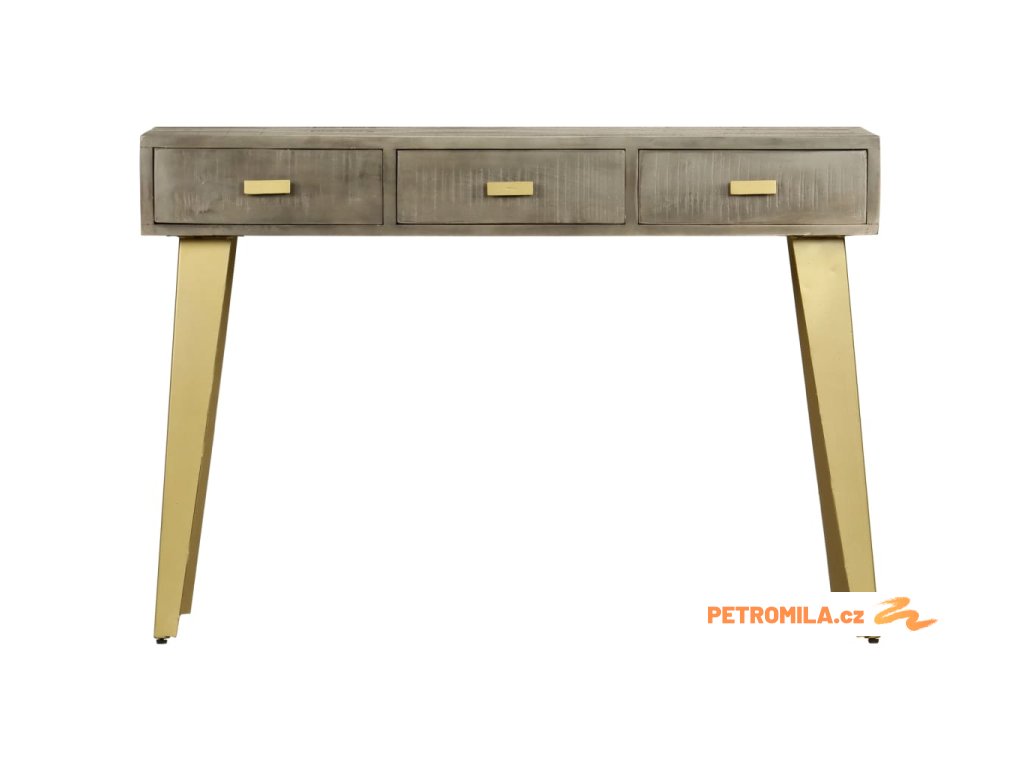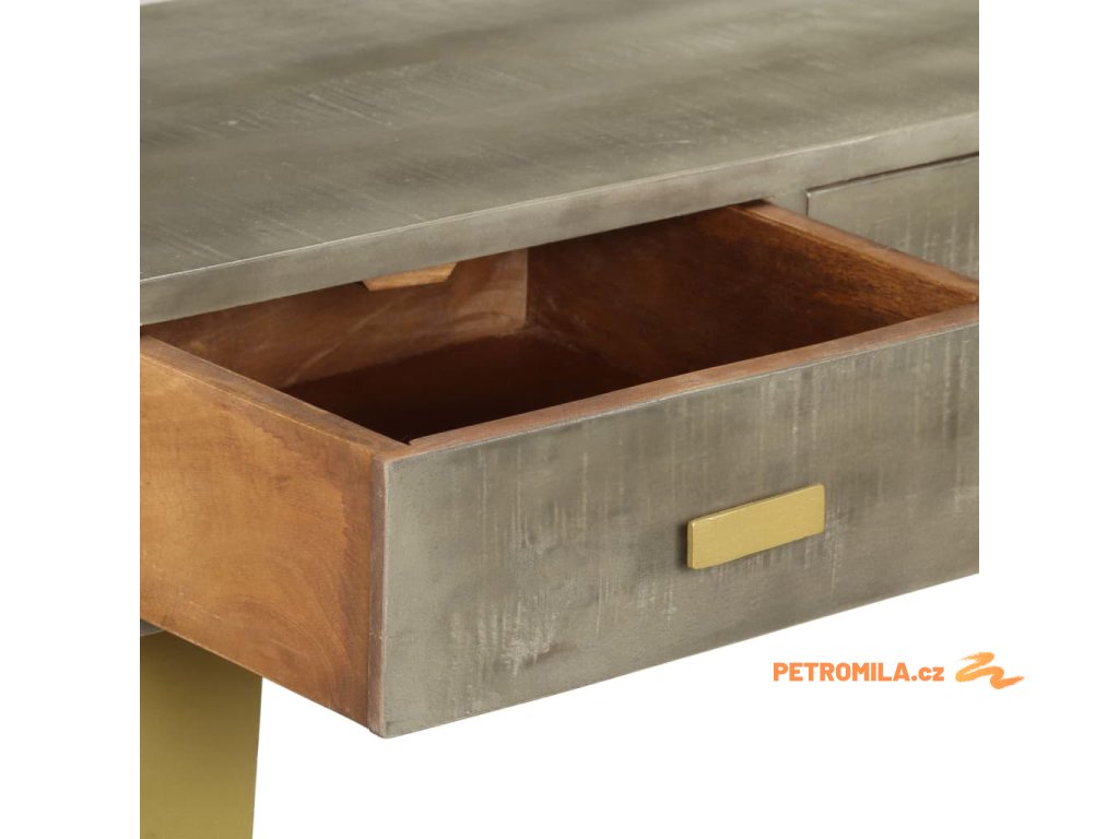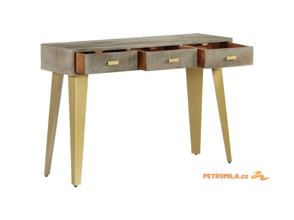 Konzolový stolek masivní mangovník šedý s mosazí 110x35x76 cm