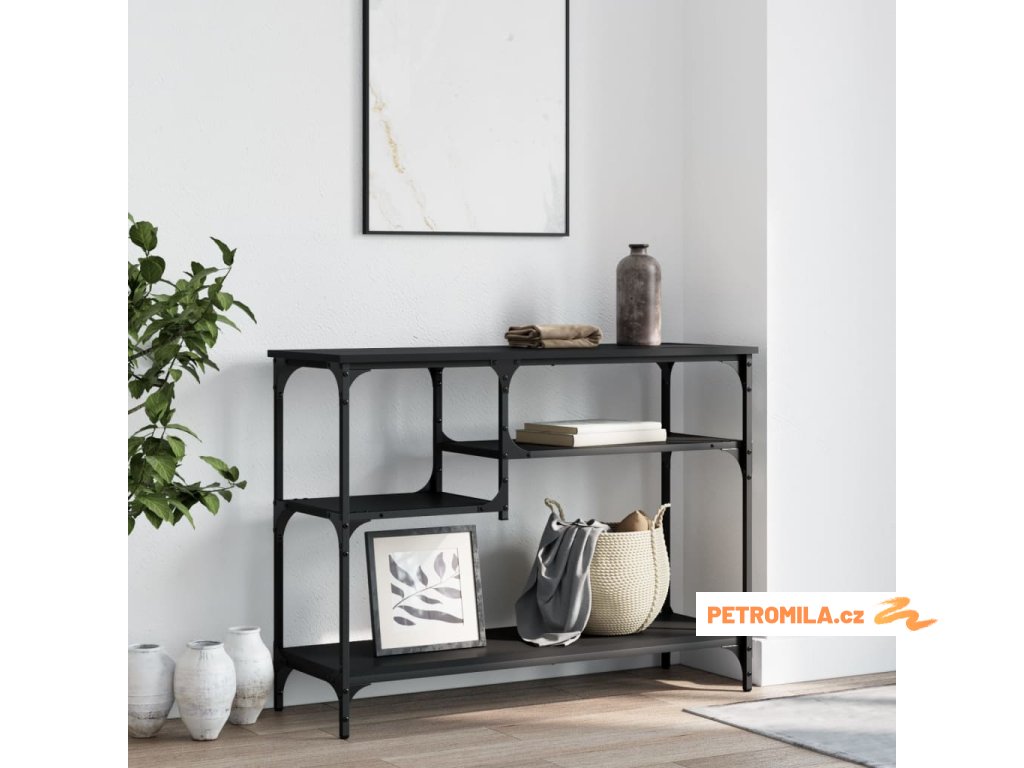 Konzolový stolek s policemi černý 100 x 35 x 75 cm