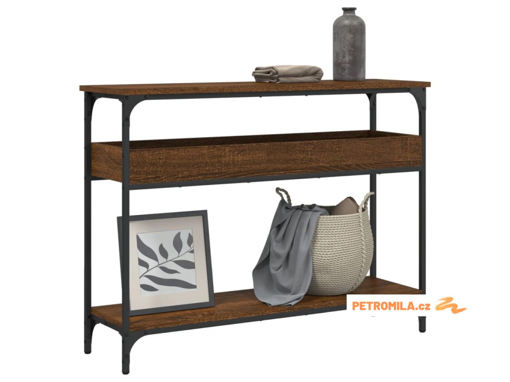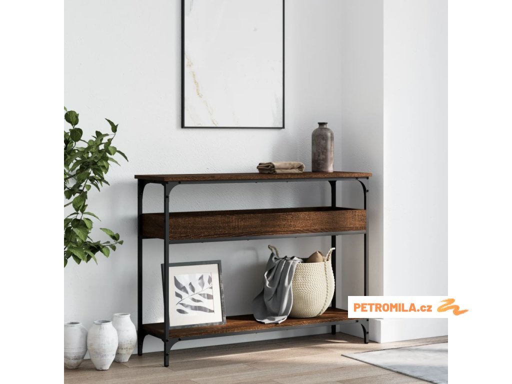 Konzolový stolek s policí hnědý dub 100 x 29 x 75 cm kompozit