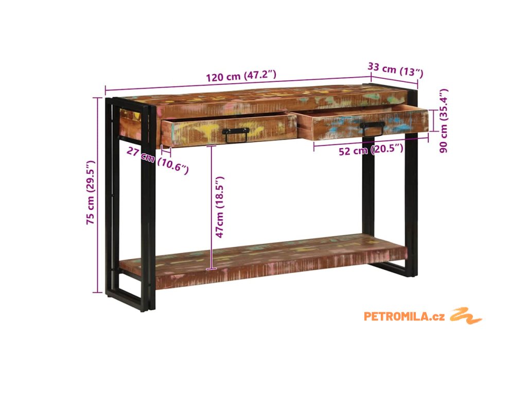 Konzolový stolek s policí Vícebarevný Masivní obnovované dřevo