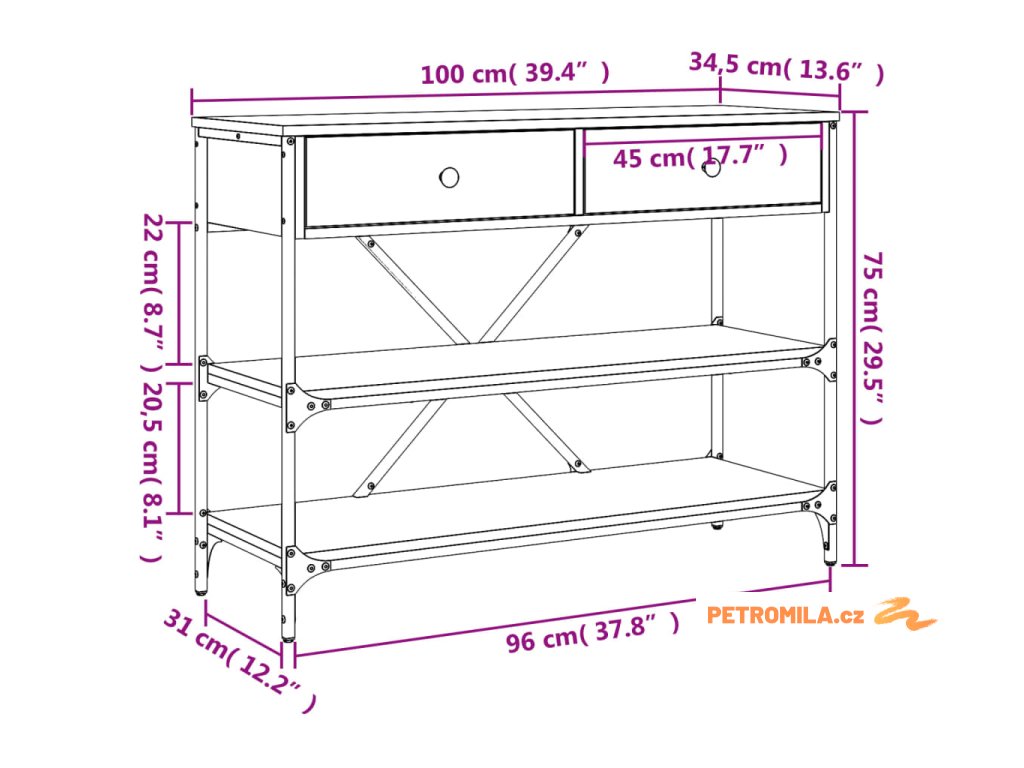 - Celkové rozměry: 100 x 34,5 x 75 cm (Š x H x V)