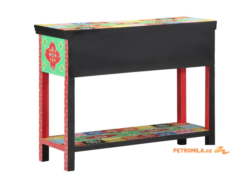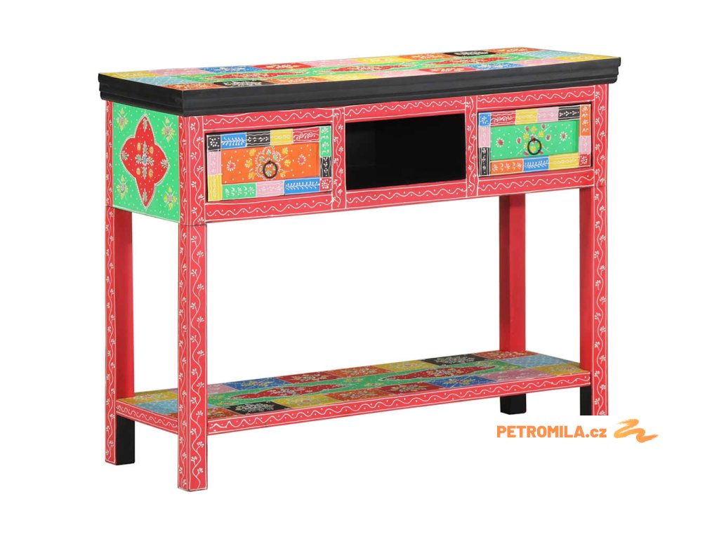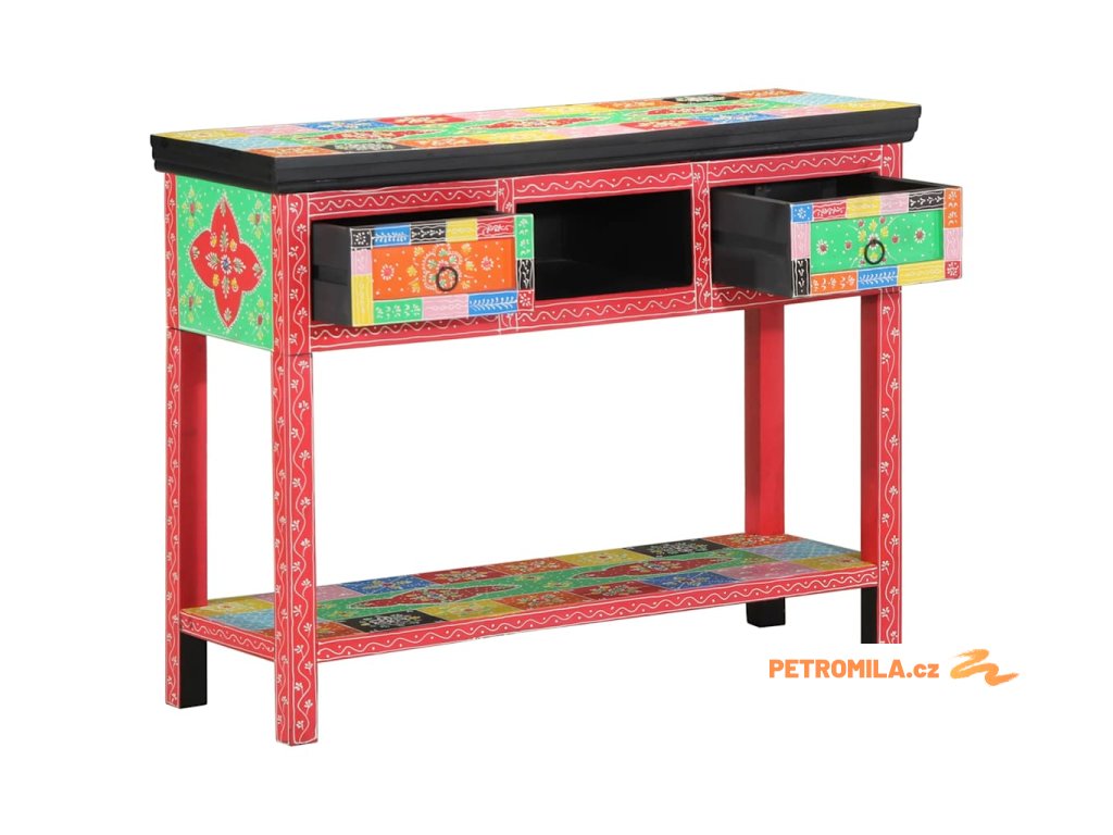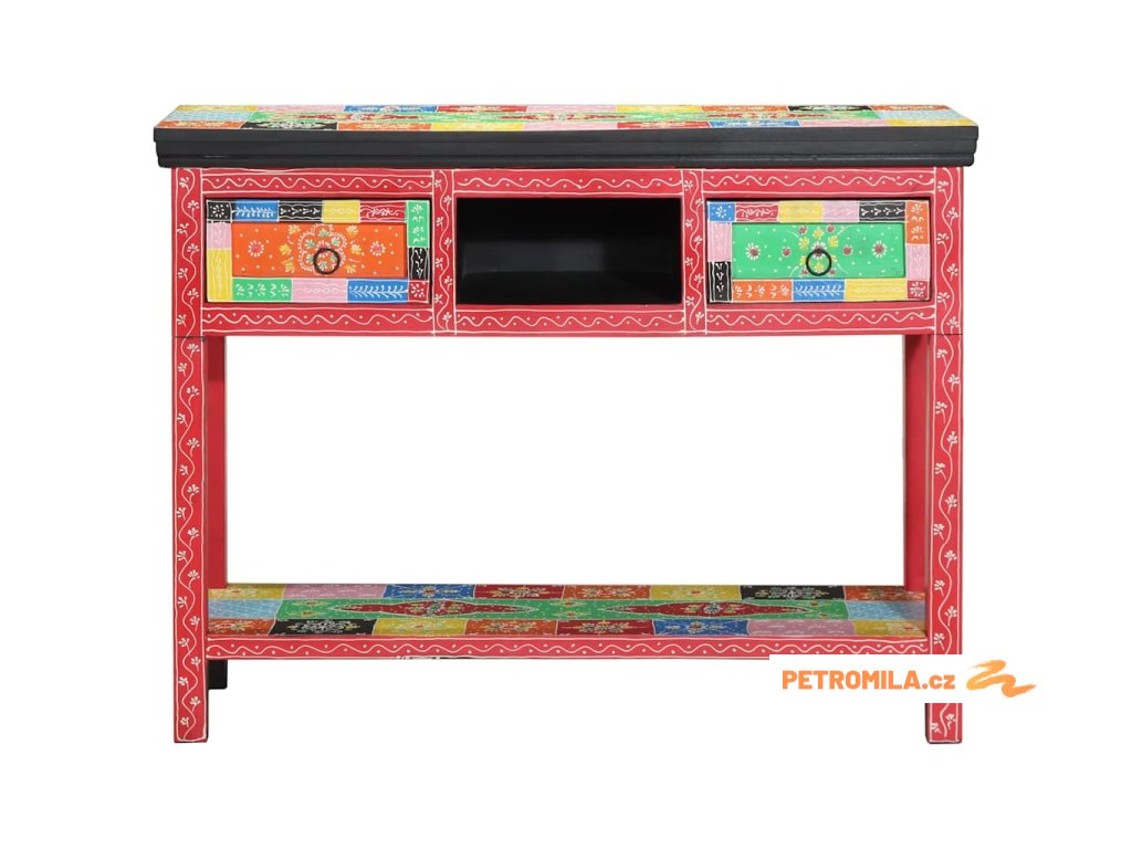 Tenhle konzolový stolek je pěkná směs stylu a praktičnosti, ideální pro vnesení barvy a moderní atmosféry do jakéhokoli prostoru. S elegantními liniemi a živým vícebarevným designem je perfektní na vystavování i úložné účely. Ať už je v obýváku nebo ložnici, bohémský šarm a pevná konstrukce stolku dělají skvělou kombinaci a vytvářejí vizuálně atraktivní pozadí pro jakoukoli výzdobu.