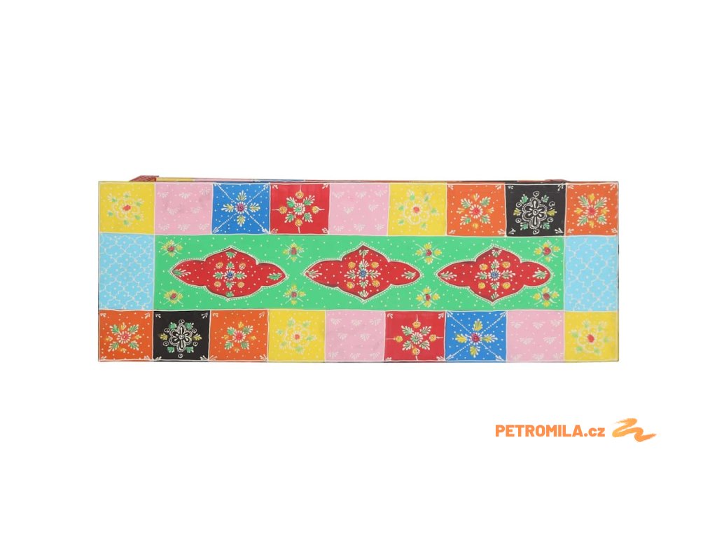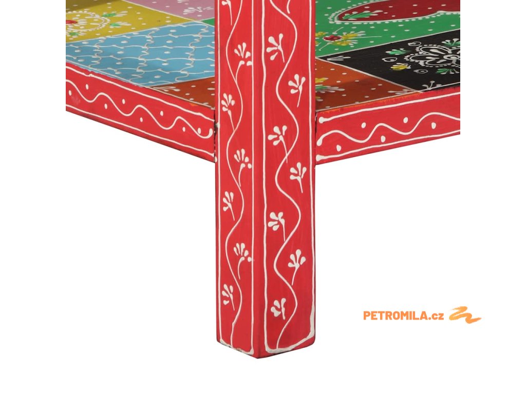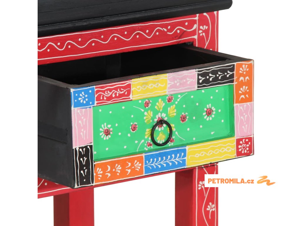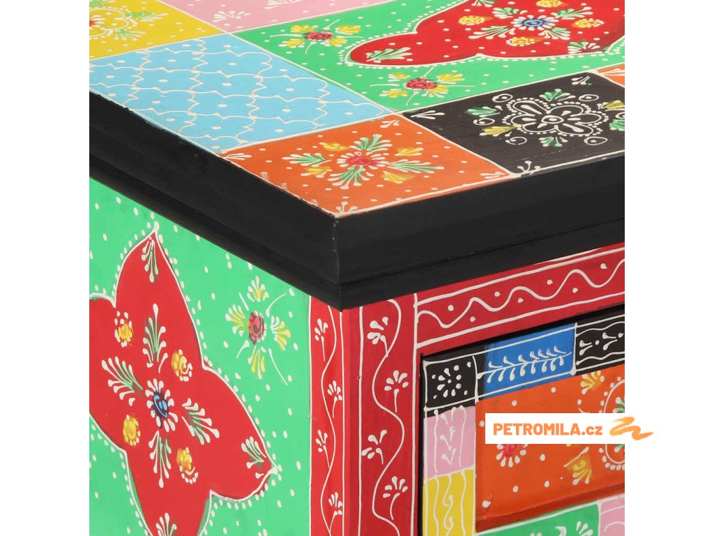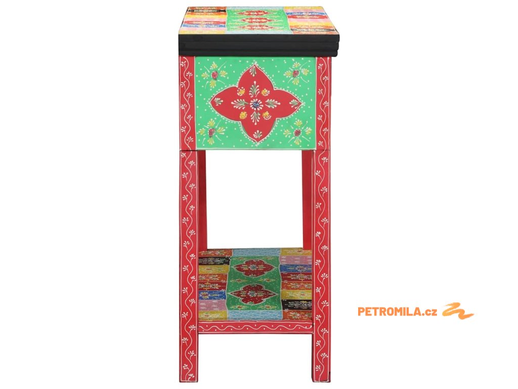 Tenhle konzolový stolek je pěkná směs stylu a praktičnosti, ideální pro vnesení barvy a moderní atmosféry do jakéhokoli prostoru. S elegantními liniemi a živým vícebarevným designem je perfektní na vystavování i úložné účely. Ať už je v obýváku nebo ložnici, bohémský šarm a pevná konstrukce stolku dělají skvělou kombinaci a vytvářejí vizuálně atraktivní pozadí pro jakoukoli výzdobu.