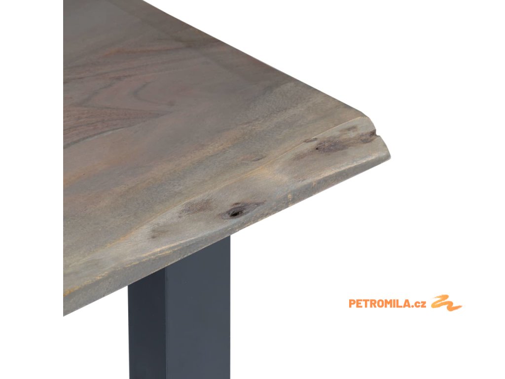 - Materiál: masivní akáciové dřevo s šedou povrchovou úpravou (stolní deska) a železo s práškovým nástřikem (nohy)