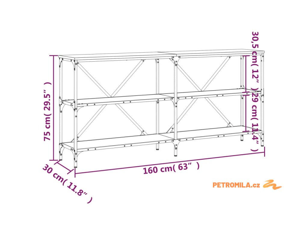 Konzolový stolek šedý sonoma 160 x 30 x 75 cm kompozit a železo