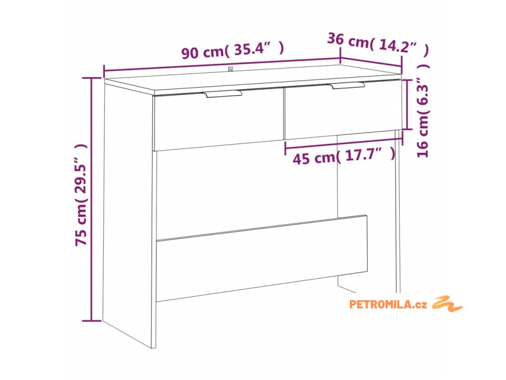 Konzolový stolek šedý sonoma 90 x 36 x 75 cm kompozitní dřevo