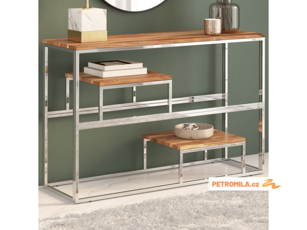 Konzolový stolek stříbrný nerezová ocel a masivní akácie