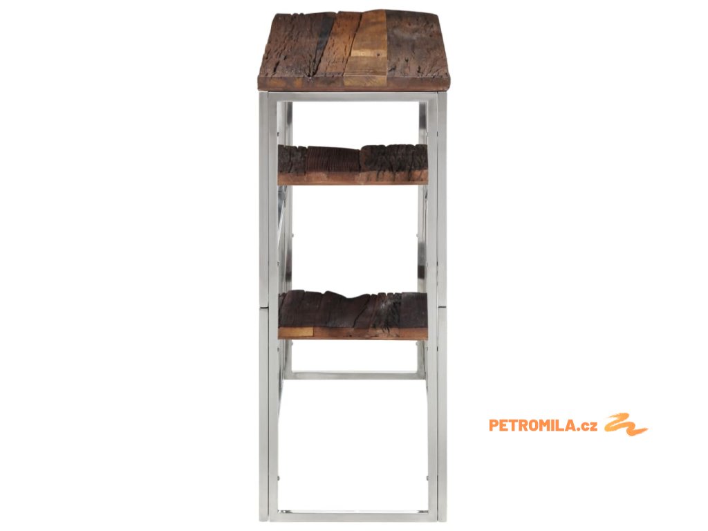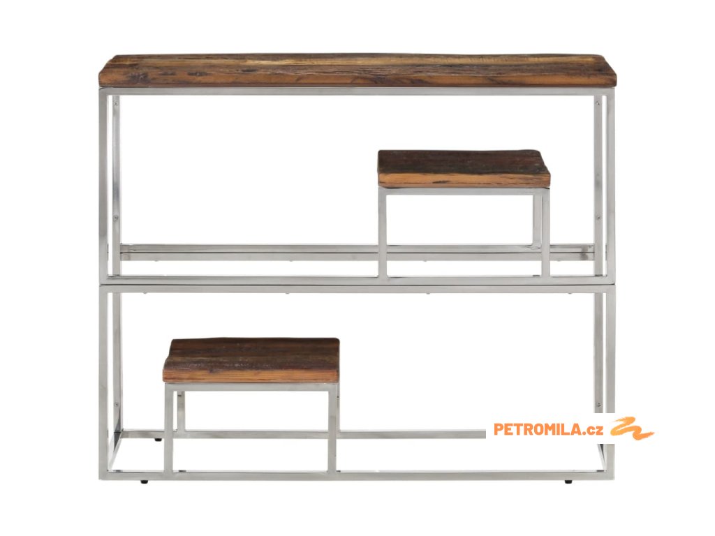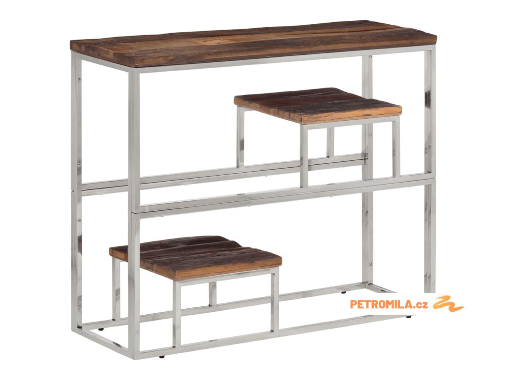 Konzolový stolek stříbrný nerezová ocel a masivní dřevo
