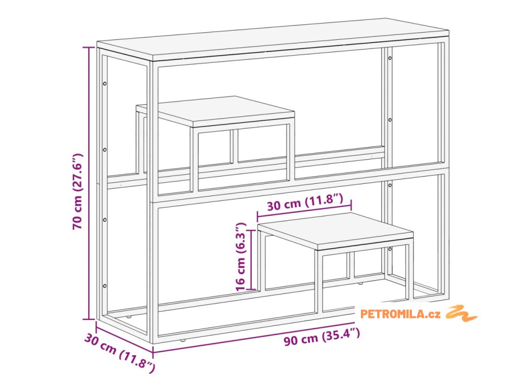 - Rozměry: 90 x 30 x 70 cm (D x Š x V)