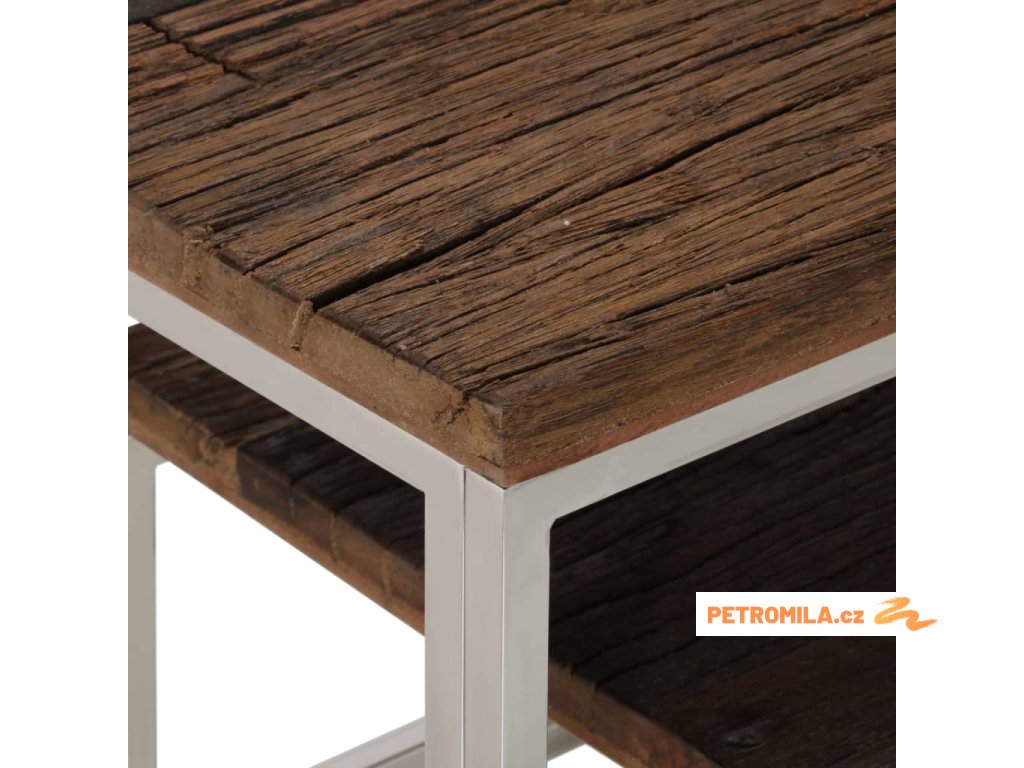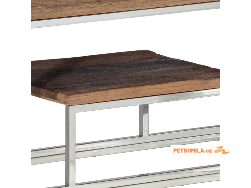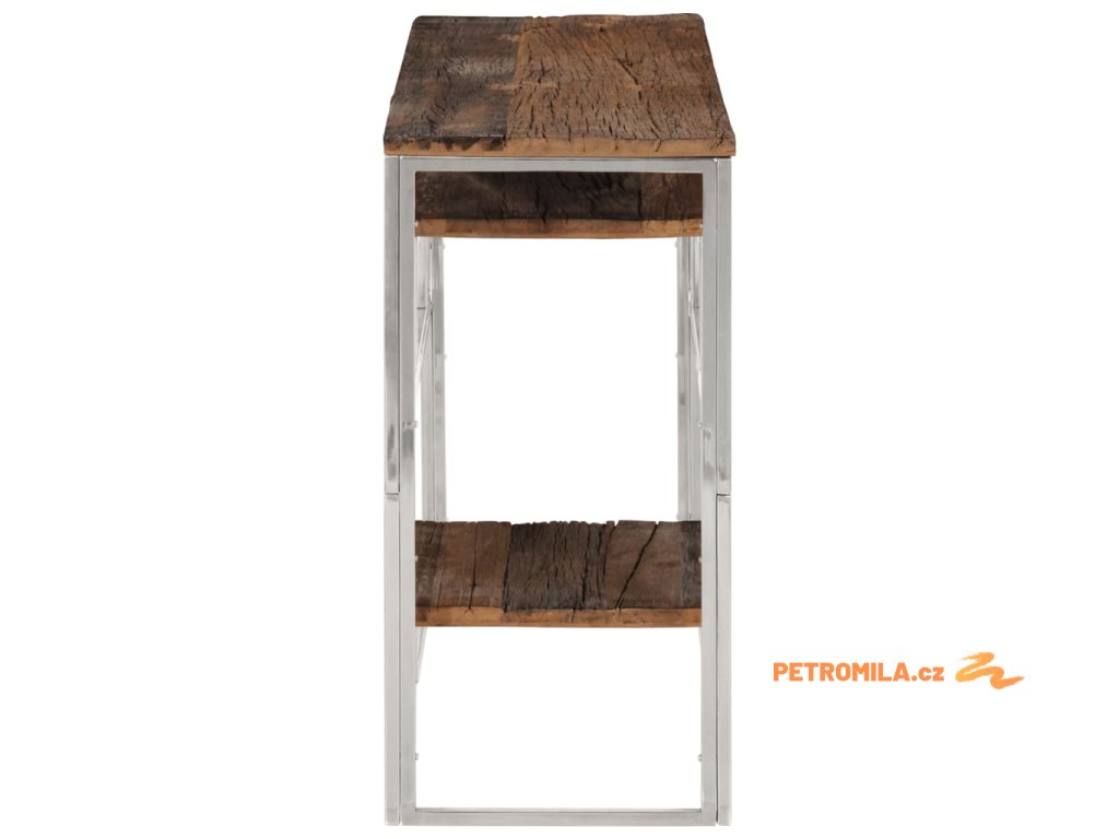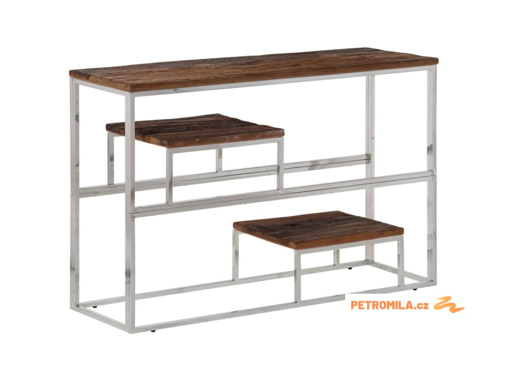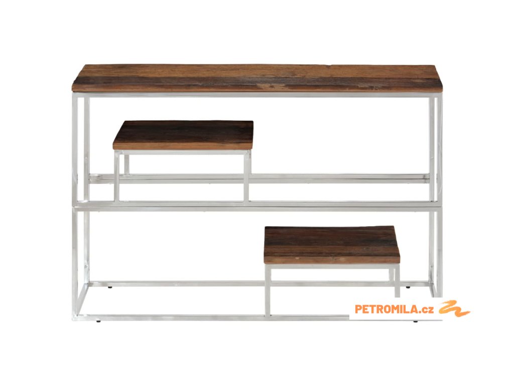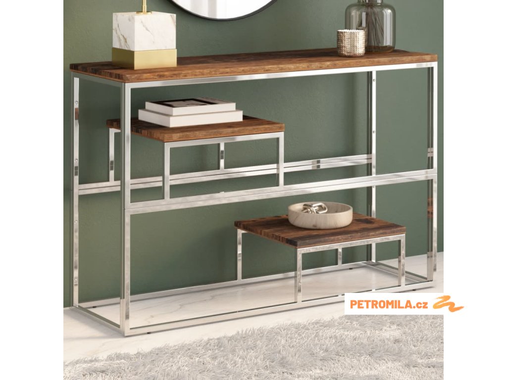 Konzolový stolek stříbrný nerezová ocel a pražcové dřevo