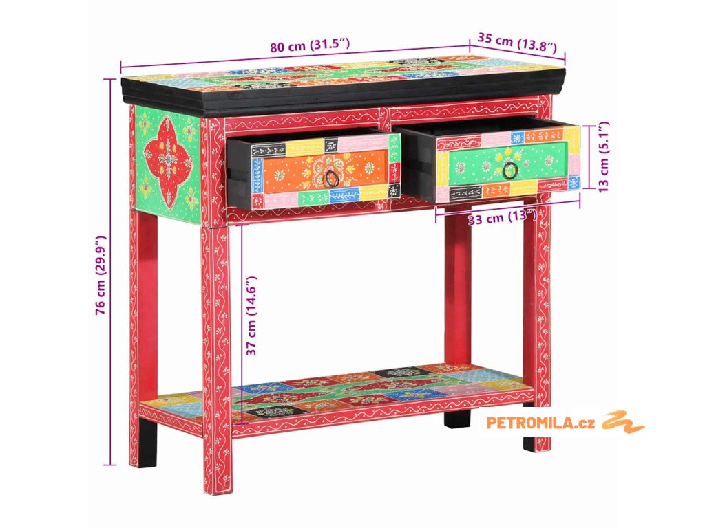 Tento Boho konzolový stolek je parádní kousek do vaší ložnice, spojení stylu a praktického využití. Jeho jasné barvy a krásný květinový motiv dodávají jedinečný šmrnc, který rozjasní každou místnost. Je kompaktní, ale přitom prostorný, takže je ideální pro vystavení nebo úložný prostor, skvělý pro jakýkoli prostor, který potřebuje moderní, eklektickou atmosféru.