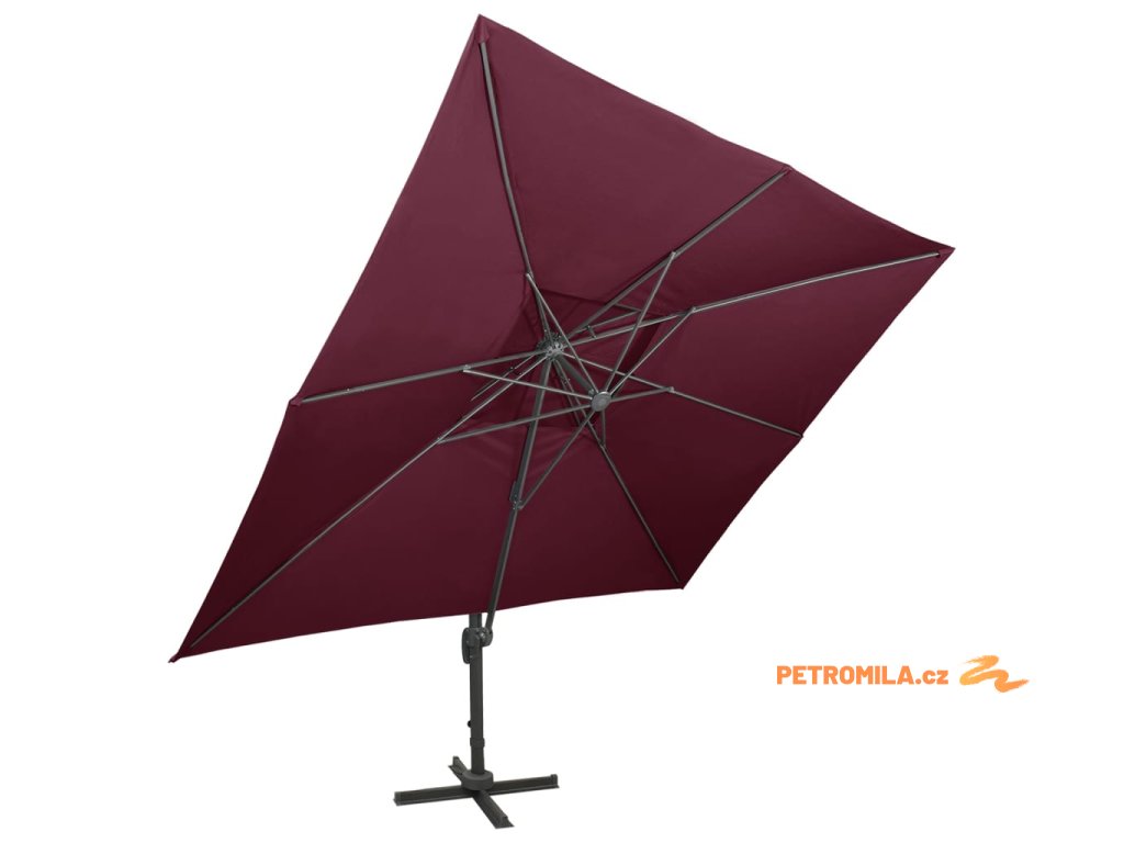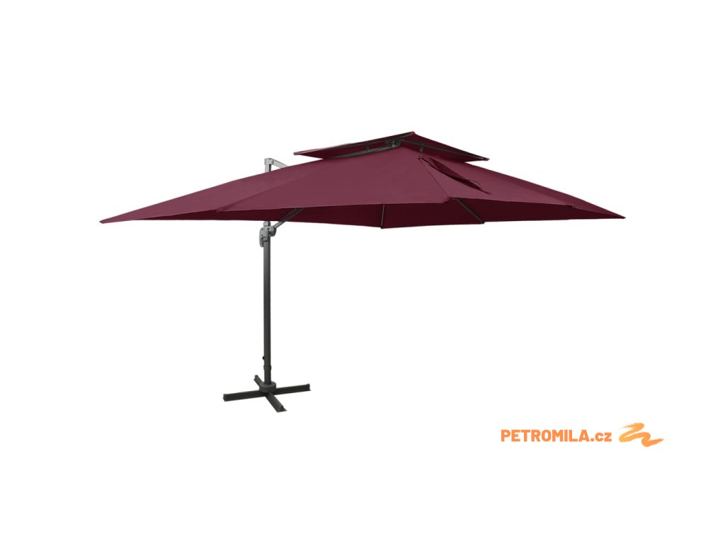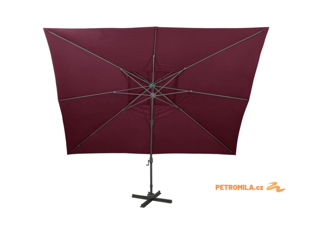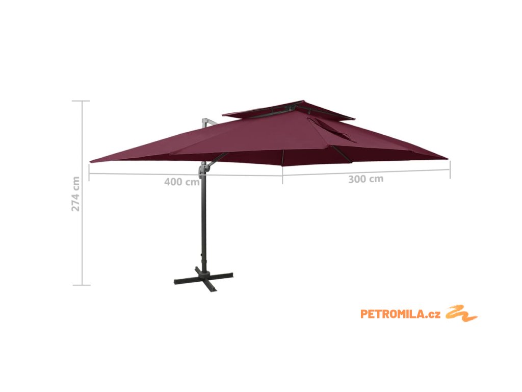 Konzolový zahradní slunečník s dvojitou střechou bordó červený 400 x 300 cm