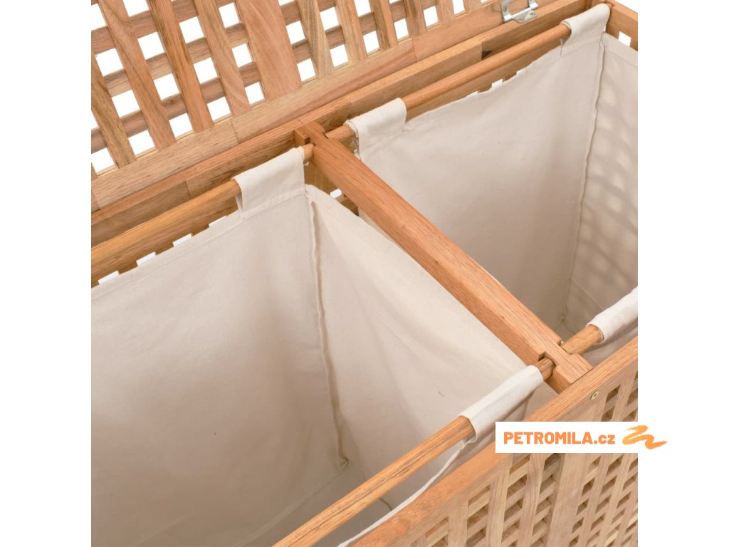 Náš dřevěný koš na prádlo se stylovým a přírodním designem a dvěma oddělenými prostory bude skvělým doplňkem do vaší koupelny nebo ložnice.