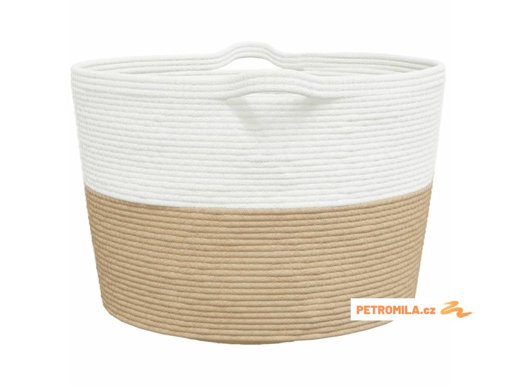 - Odolný materiál: Úložný koš je vyroben z tkaných bavlněných provazů, které vynikají svou prodyšností, měkkostí a výjimečnou odolností.