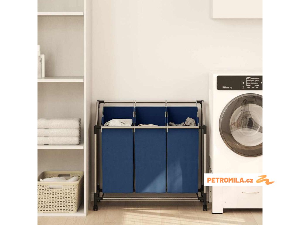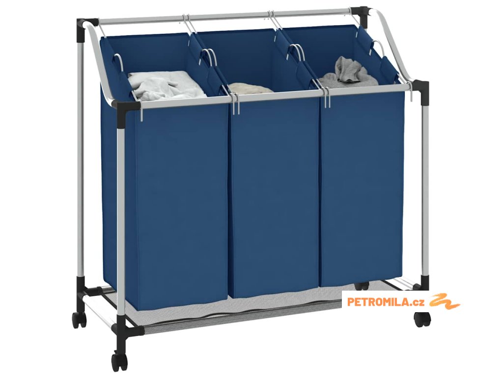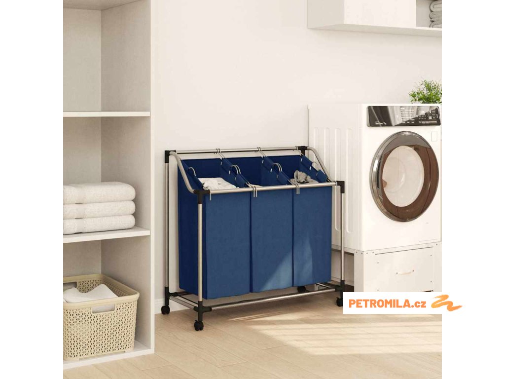Koš na třídění prádla se 3 vaky modrý ocel