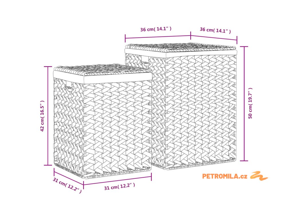 - Rozměry menšího koše: 31 x 31 x 42 cm (Š x H x V)