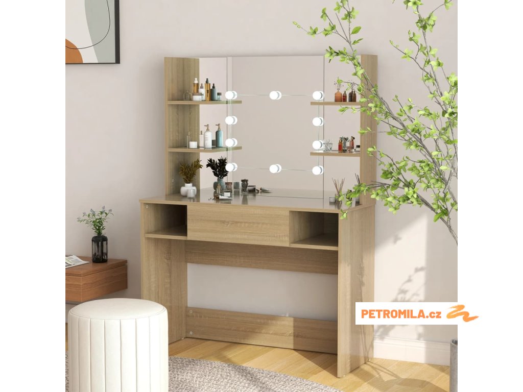Kosmetický stolek s LED světly 100 x 40 x 135 cm MDF dub