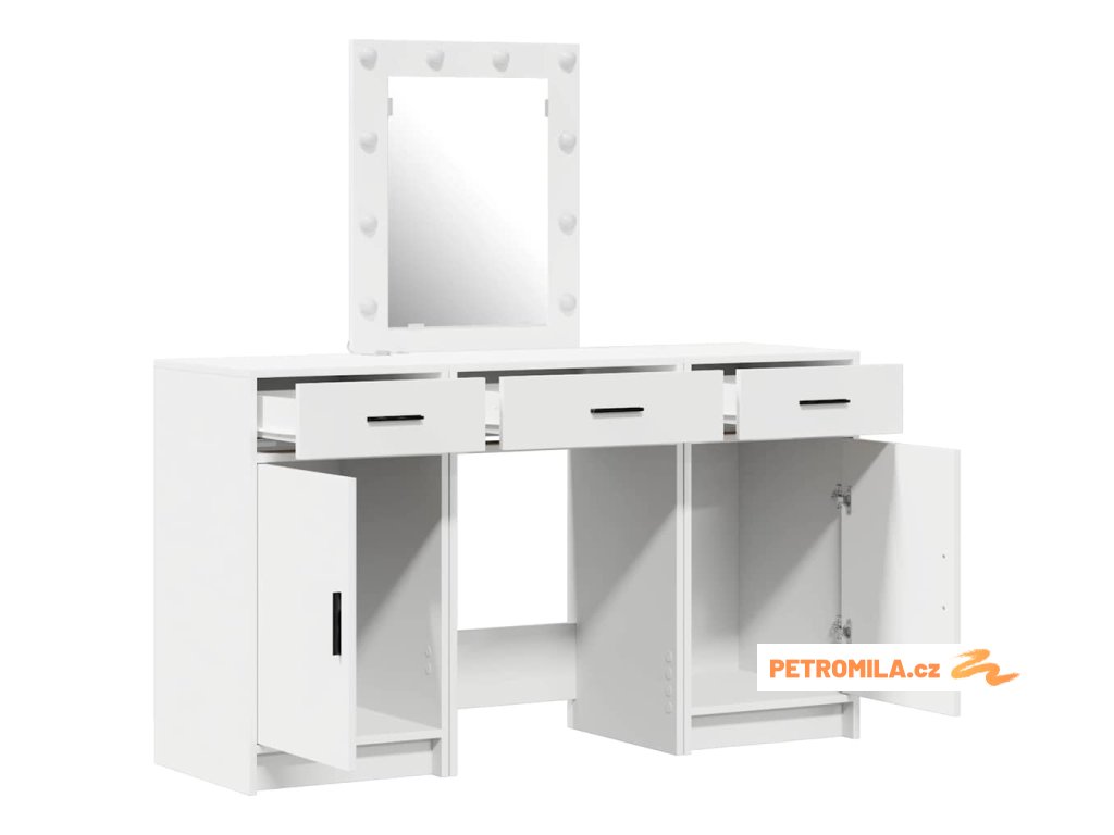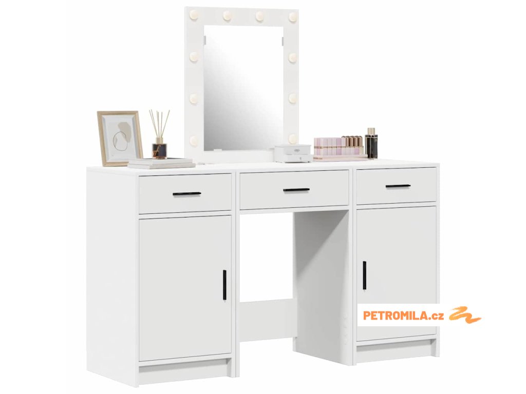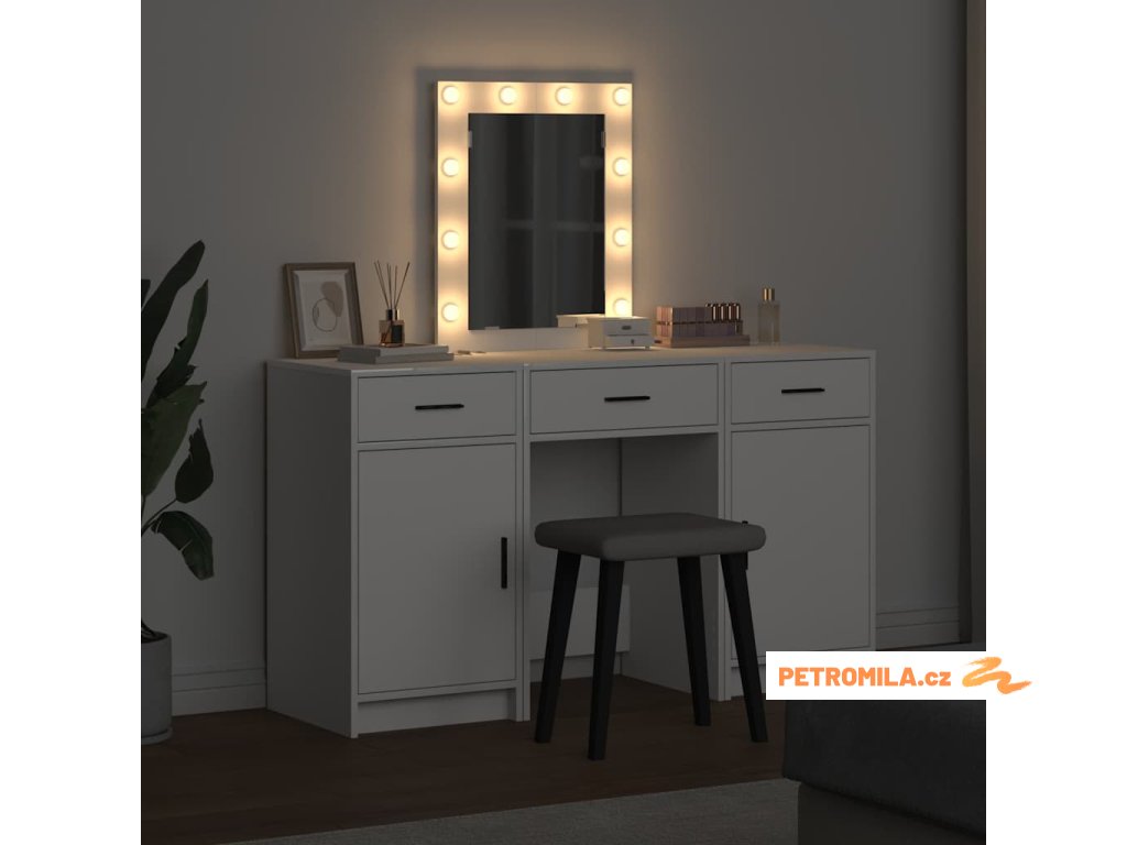 - Prostorné úložné možnosti Udržuj si pořádek s dostatkem úložných míst, včetně několika zásuvek a skrytých přihrádek. Pomůže ti splnit všechny organizační potřeby, od kosmetiky až po doplňky. Tohle chytré uspořádání maximálně využívá prostor a dělá stolek mnohem užitečnějším.