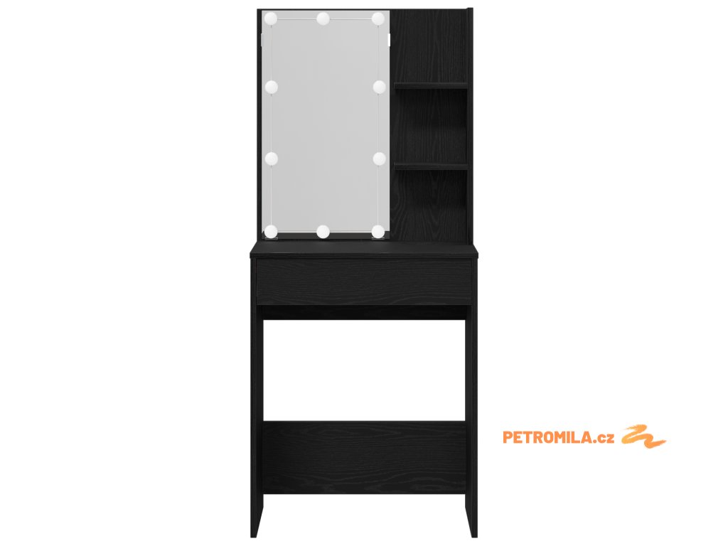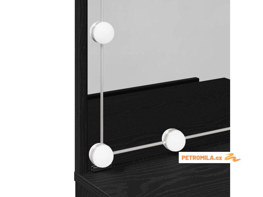 - Součásti: Stolek příjde s policemi a zásuvkami z inženýrského dřeva, což nabízí dost úložného prostoru. LED světla jsou zabudovaná do zrcadla pro jasné odrazy, což dává stolek uživatelsky přívětivý feel.