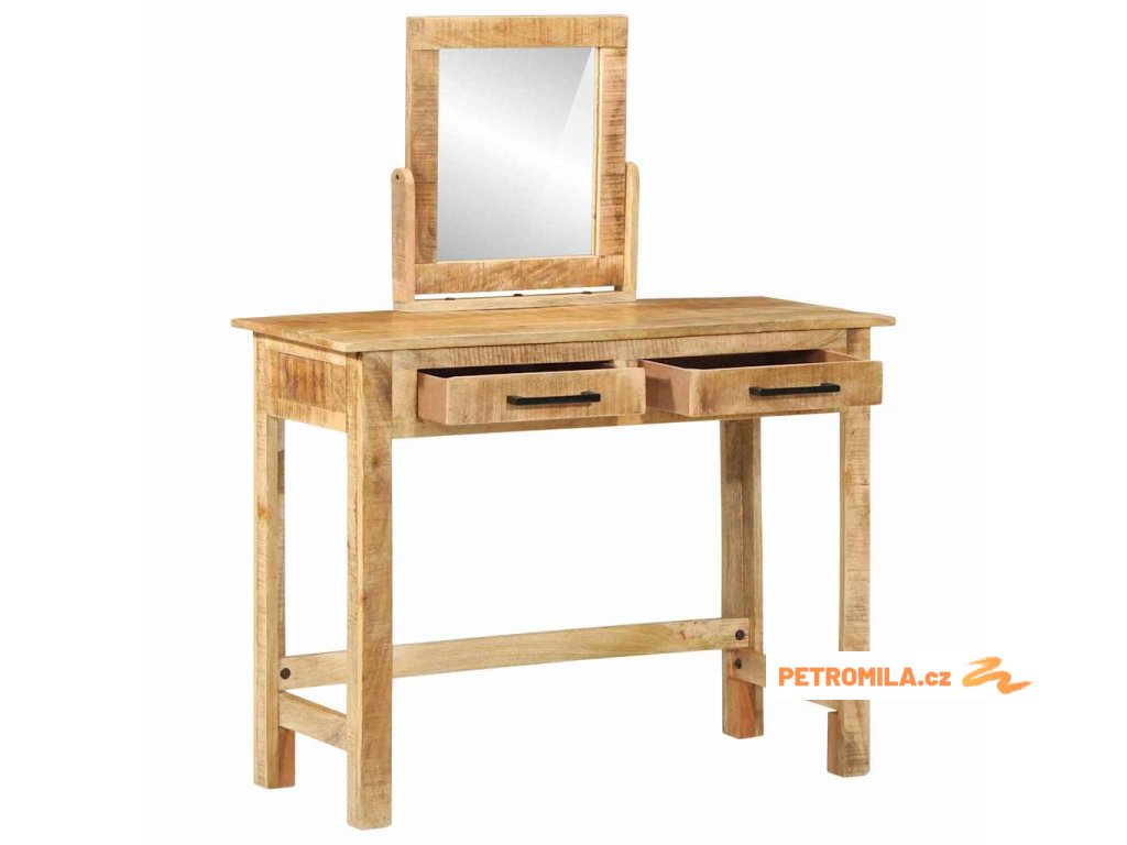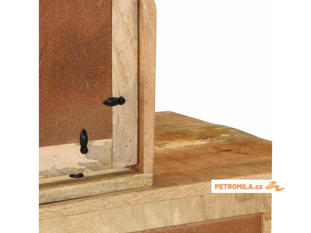- Materiály: Toaletní stolek je z masivního mangového dřeva, které je trvalé a má krásnou strukturu. Není to jen dlouhotrvající materiál, ale také přidává vaší ložnici teplo a vypadá skvěle i při každodenním používání.