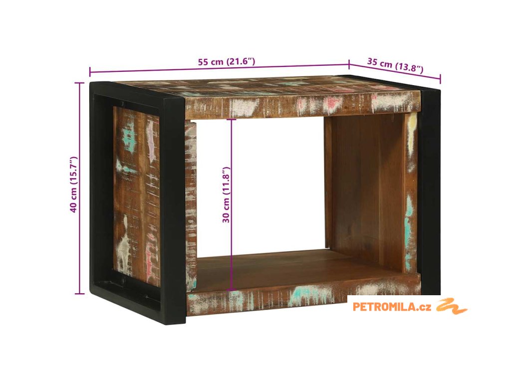 Kostka s policí Hnědá 55 x 35 x 40 cm Masivní recyklované dřevo