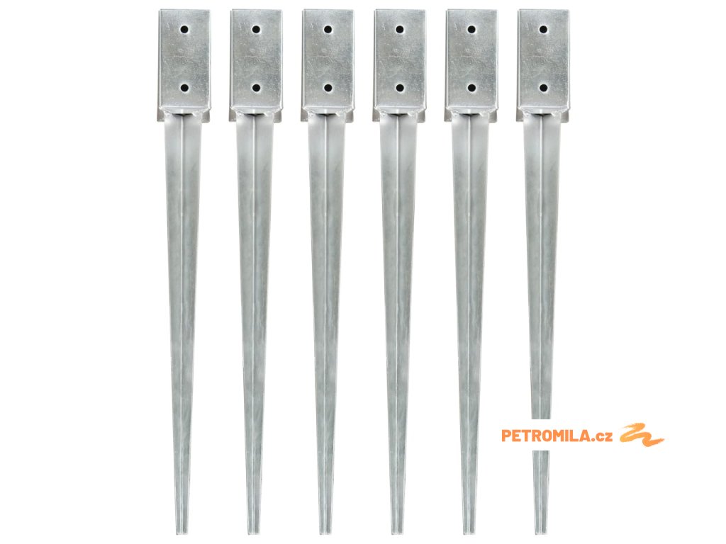 Kotvící hroty 6 ks stříbrné 7 x 7 x 75 cm pozinkovaná ocel
