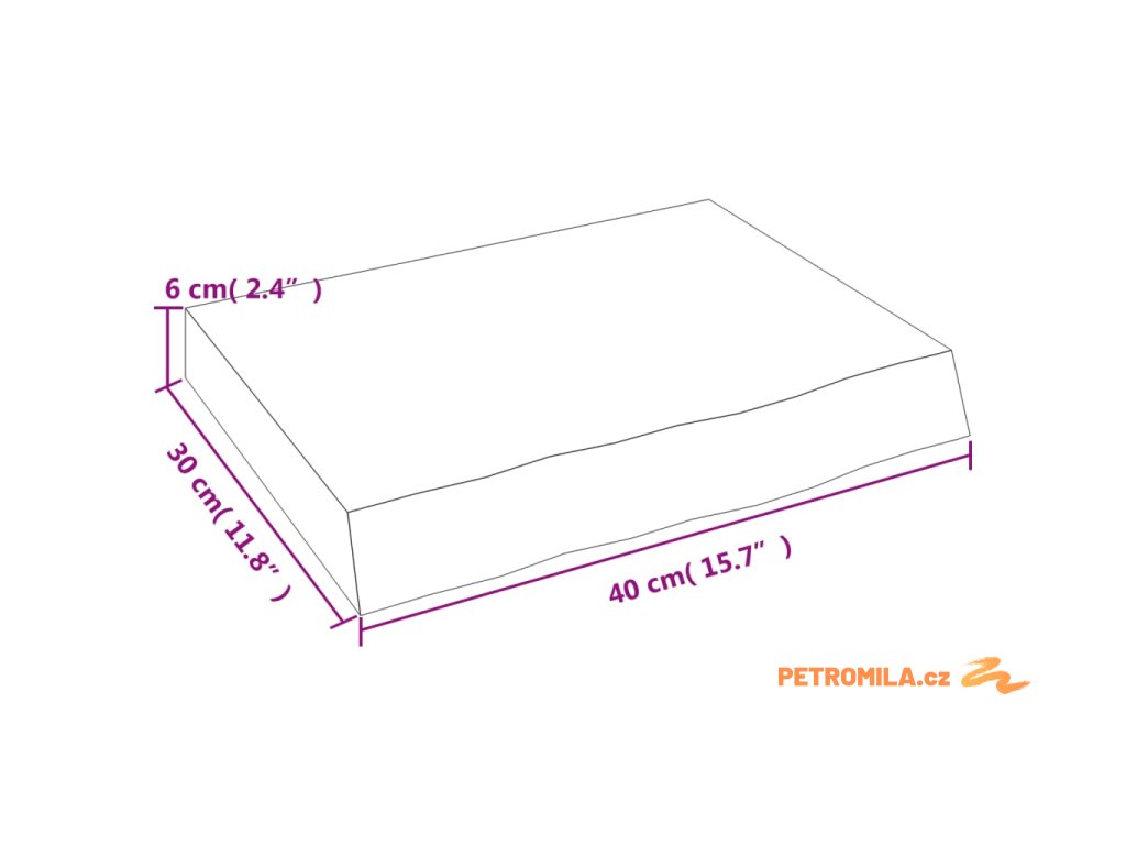 Koupelnová deska 40x30x(2-6) cm neošetřené masivní dřevo