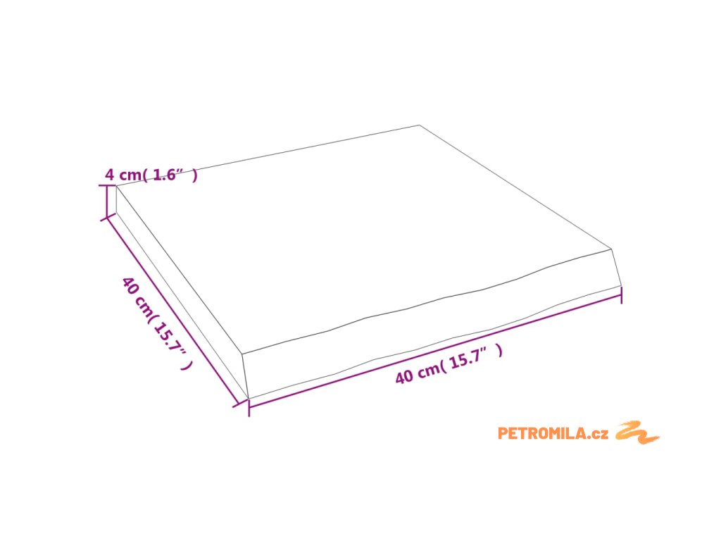 Koupelnová deska 40x40x(2-4) cm neošetřené masivní dřevo