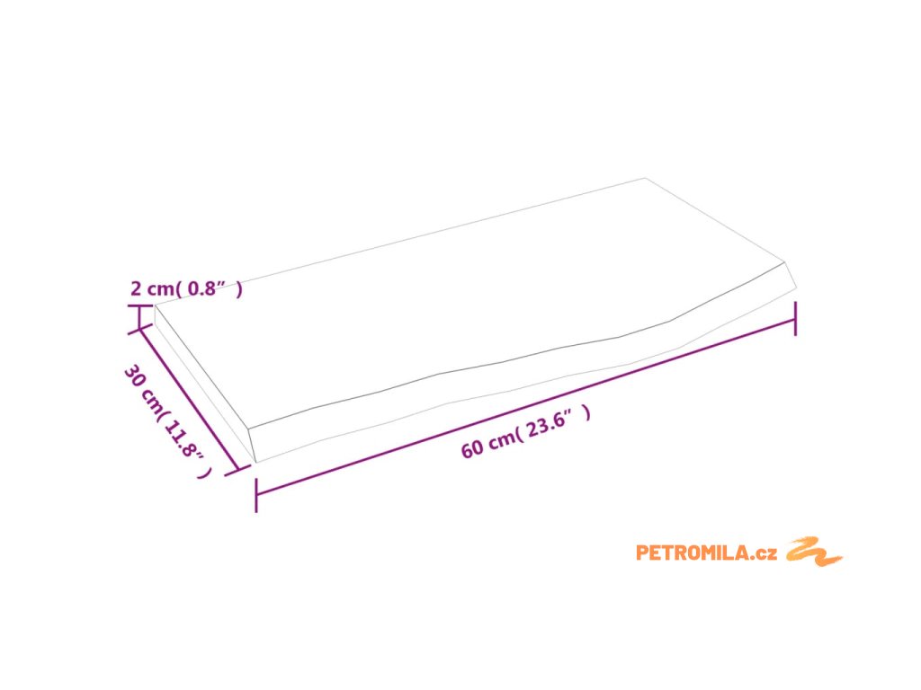 Koupelnová deska 60 x 30 x 2 cm neošetřené masivní dřevo