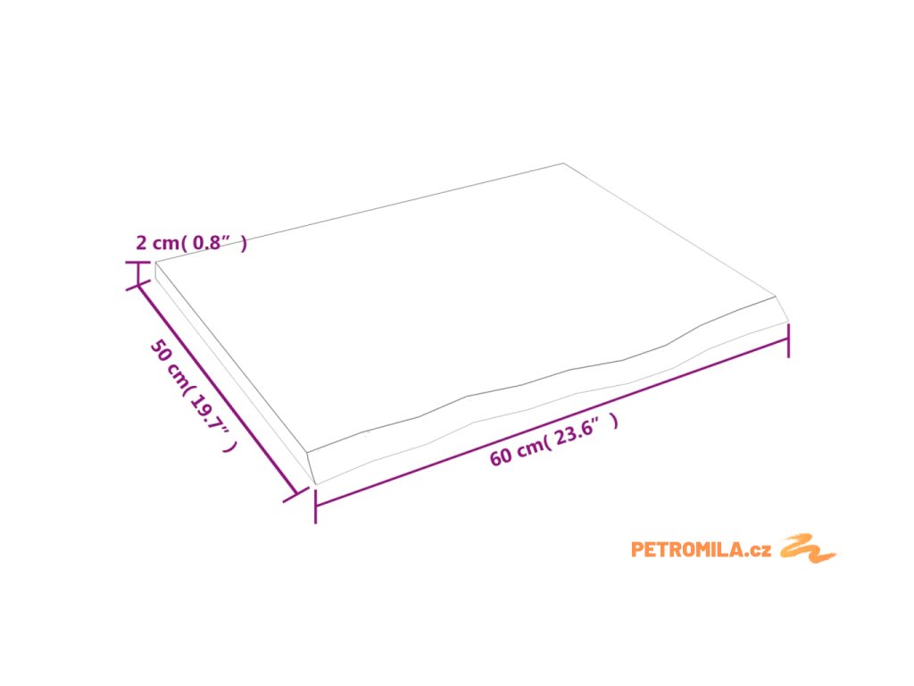 Koupelnová deska 60 x 50 x 2 cm neošetřené masivní dřevo